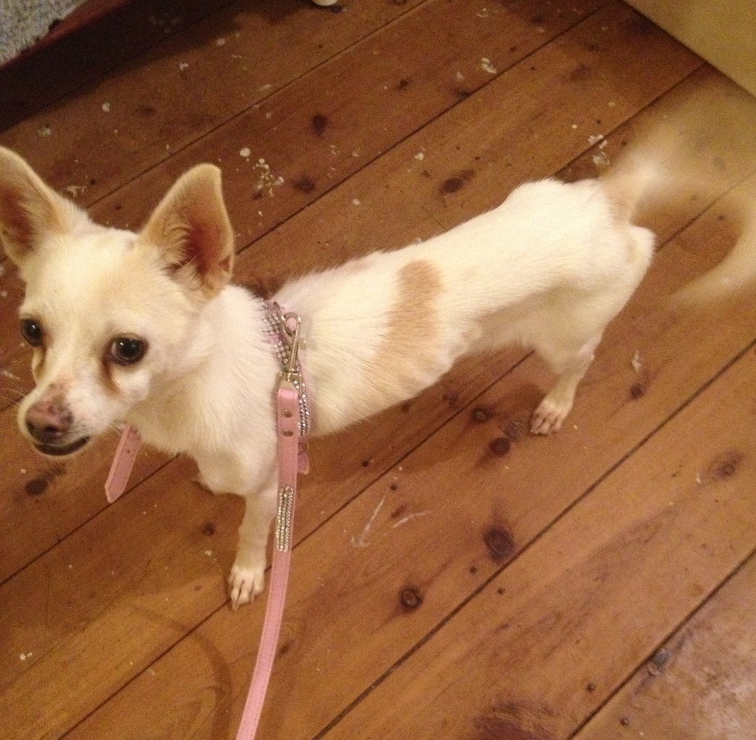 Fern has blossomed in many ways since coming into my home, Fern has learned to play with the other dogs, and is fully housetrained. She is also trained to use a pad . Fern sleeps all night without a peep and is one awesome little dog. Fern is not a barker and is a very happy little girl.