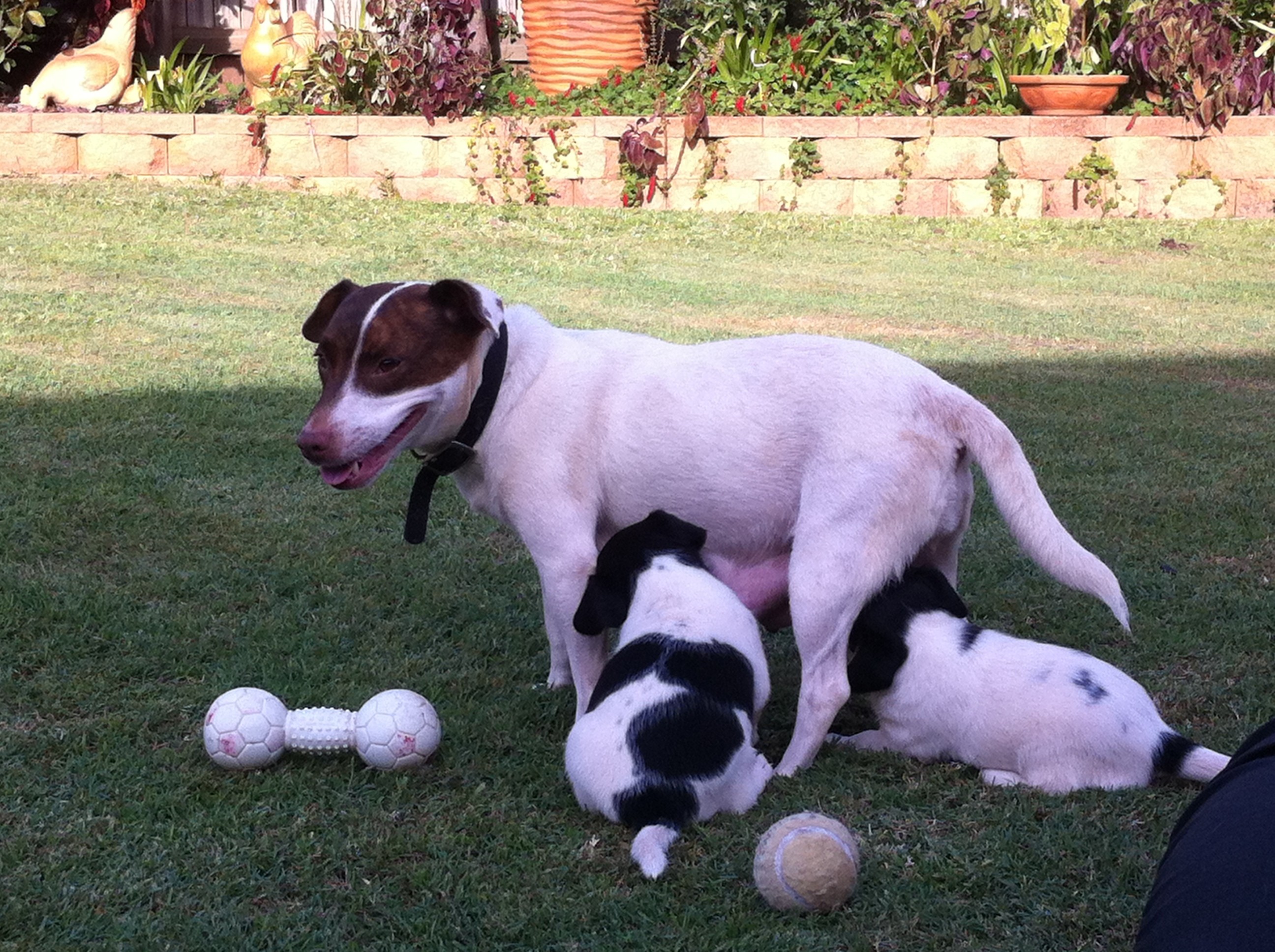 Hi my name is Gracie and I came into the shelter as a stray. At the time I was pregnant and gave birth to 5 adorable puppies which have now found there loving homes. Now the time has come for me to find mine. For the past 13 weeks I have been out on foster with a lovely family who have showered me with love. I get along well with other dogs and also don't mind cats. Some people think at times that I may have staffy in me because I can be very vocal at times. I love playing but can get abit rough at times. I would best suit a family who has another dog or someone who has plenty of time on there hands to spend with me. I do know basic obedience commands e.g sit and have been taught to sit before eating my meal at night. If I sound like the one for you then please come for a visit. I am available for $199.00.