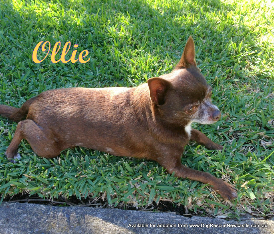 Ollie is an 8 year old purebred Chihuahua. He is a tiny little fella. A great companion for an older person or anyone who needs a friend. Ollie will fetch his favourite red squeeky toy and loves a trip in the car. He enjoys a relaxing walk off the lead. He has a very handsome chocolate brown coat. He enjoys being brushed and is no trouble to bath. Ollie is housetrained and used to being inside and will sleep in his bed or loves a cuddle in your bed if you'll let him. He is friendly with most other dogs.