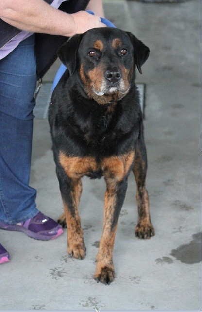 Diesel is a 10 year old Rottweiler cross and is a very sweet boy. Despite his age his health check was very positive and the vets commented that he could jump with ease. This boy has a good heart and some basic obedience training. He is very laid back and is just a big sook. When you are not paying attention to him he puts his paw up to get your attention and then comes in for a cuddle.