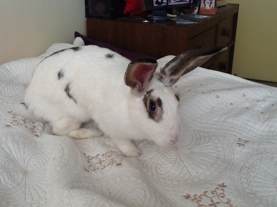 Karina came from a situation of severe neglect. She was living amongst 20 other rabbits, male and female.Several were constantly pregnant and all rabbits were covered in bite marks from fighting.