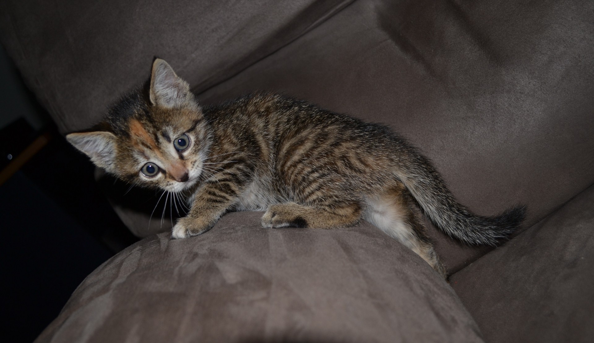 A gorgeous female Torti who was found in a Newman backyard playing with her sister and brother at midnight. Tilly has beautiful markings with ginger scattered throughout her fur and a little black dot on her nose.