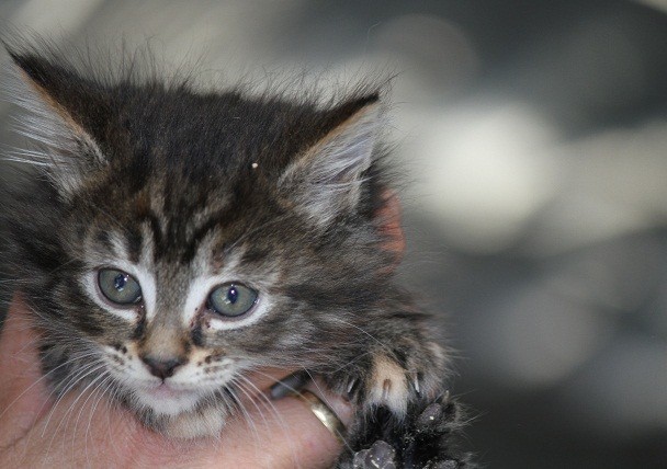 This very sweet tabby female kitten is 7 weeks old. She is a very dark tabby with white highlights on her face. Even though she is not quite old enough to go to his new home we are looking for someone that might like to give this sweet little girl her forever home.