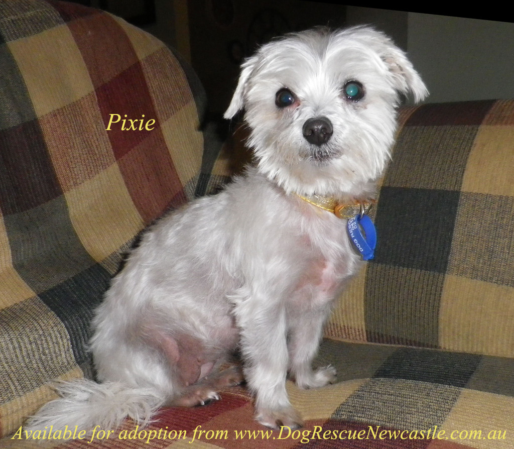 Little Pixie is a 5 year old, Maltese x Silky Terrier. She suits her name perfectly as she is a gentle as a butterfly and as cute as a button. The thing she likes the most is to have someone’s attention; she will patiently wait until invited up on your knee and spend the time sitting quietly and enjoying your company. She is also very playful and enjoys a friendly wrestle with another small dog. She also likes you to play with her toys with her.