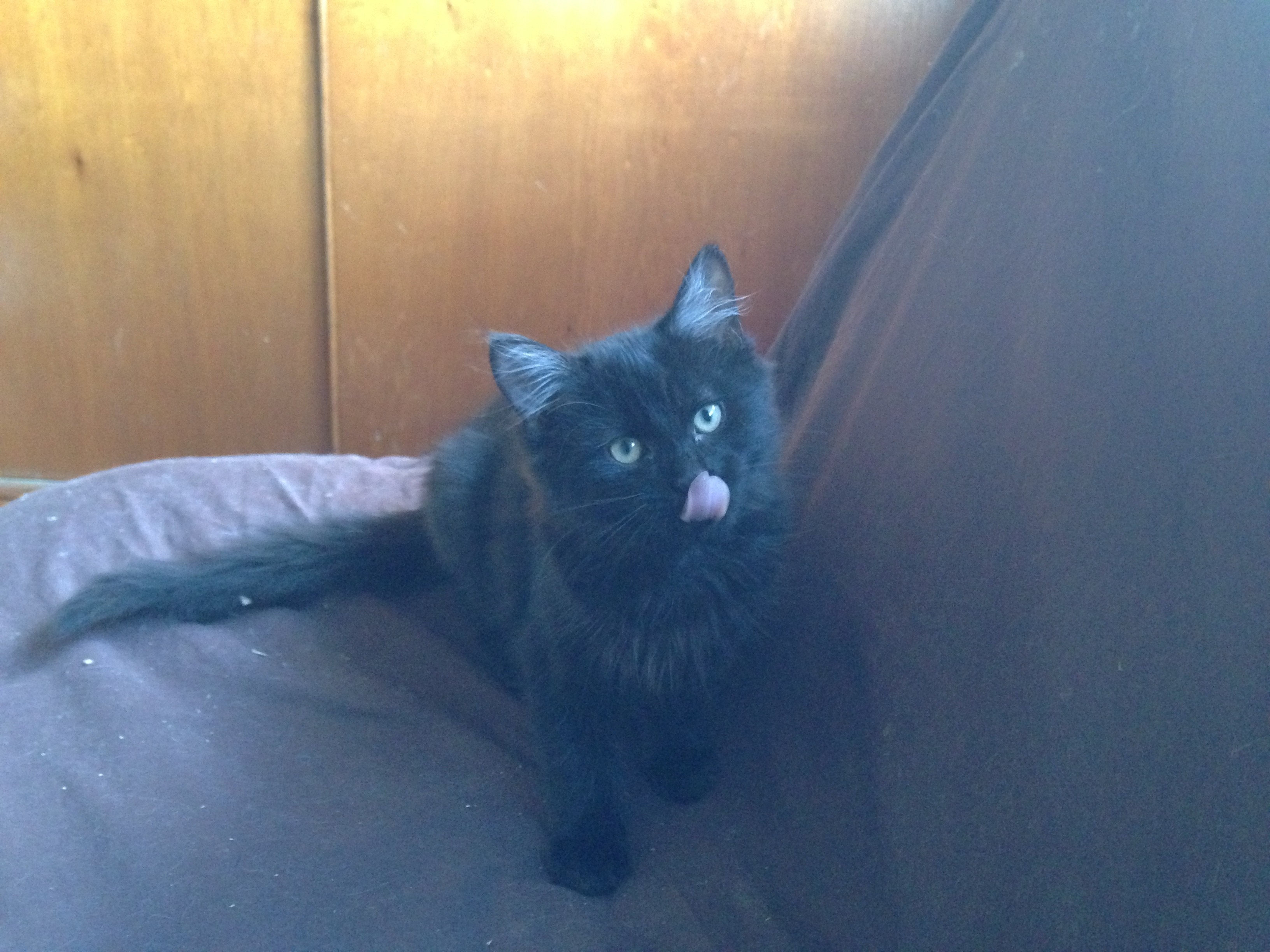 Grantham is a playful boy who is loving and curious. Black devil by day - serial smoocher by night. He enjoys celebrating a hard day chasing toys with a good head rub and a purr.