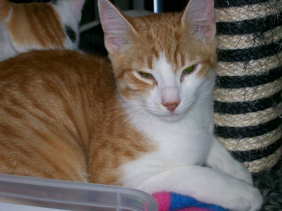 Turbo is an extremely friendly and outgoing little boy who gets on great with all other cats. He loves to curl up next to his people and purr loudly in your ear. Great with kids. He isn't used to dogs, but with careful introduction would come around to a small dog as he just lives for his next adventure.