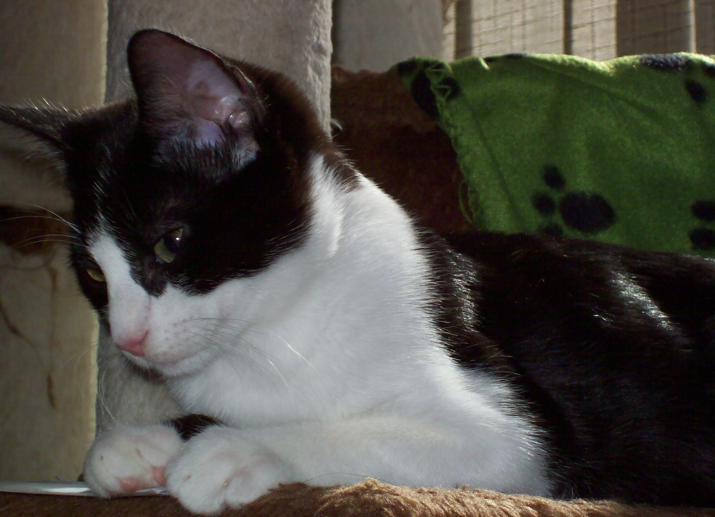 Sheldon is a friendly and very happy little boy who craves contact, both humans and cats alike. He can become anxious if he thinks he's left alone and would be better suited to a home with another cat, especially if his human is away all day. He is quite nervous around younger children, so wouldn't suit a household with kids under 10 years of age. He will often curl up on your shoulder, purring loudly in your ear while watching television. Siblings are Turbo and Ella.
