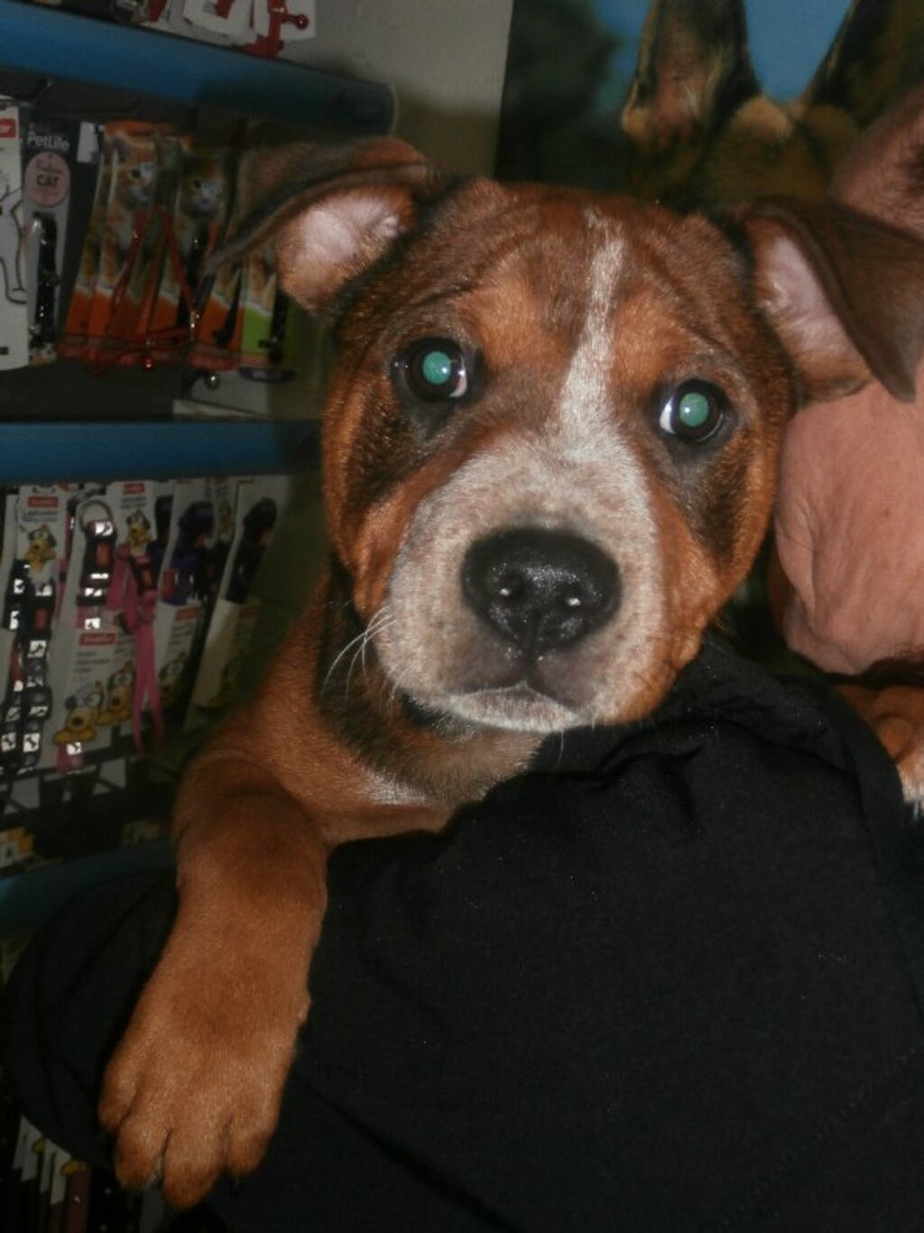 Hi my name is Scar and I am in need of a new loving home to call my own. I am a sweet natured boy who will grow up to be a medium sized dog with plenty of energy to burn. I love playing but also love cuddles. I get along well with other dogs as well. If I sound like the one for your family then please drop into the shelter for a visit. I am available for $365.00.