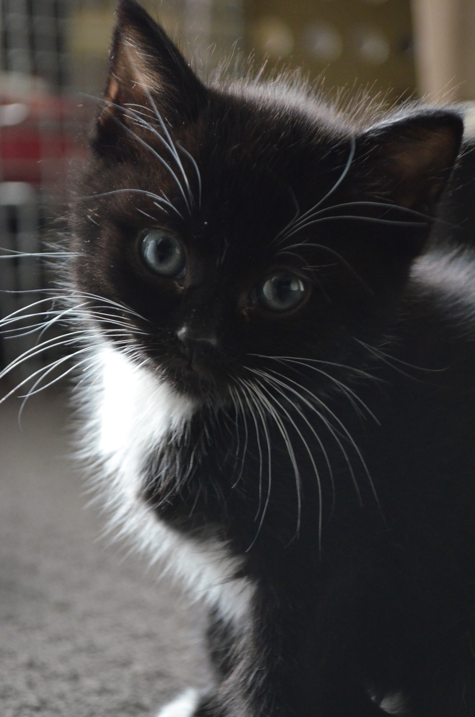 Pina is short for Proserpina, the goddess who lived half in the underworld and half with her mother, the goddess of the crops. A salubrious name for this elegant and adorable little girl! She has the most exquisite button nose on her black face, complementing her white paws, chest and stomach. She loves to play and investigate what's going on around her, but she also loves to be with you, snuggled in against your leg, or your arms, or anywhere with you. Just picking her up can turn her into a purring machine! She is also an excellent head-butter, an excellent feline quality!