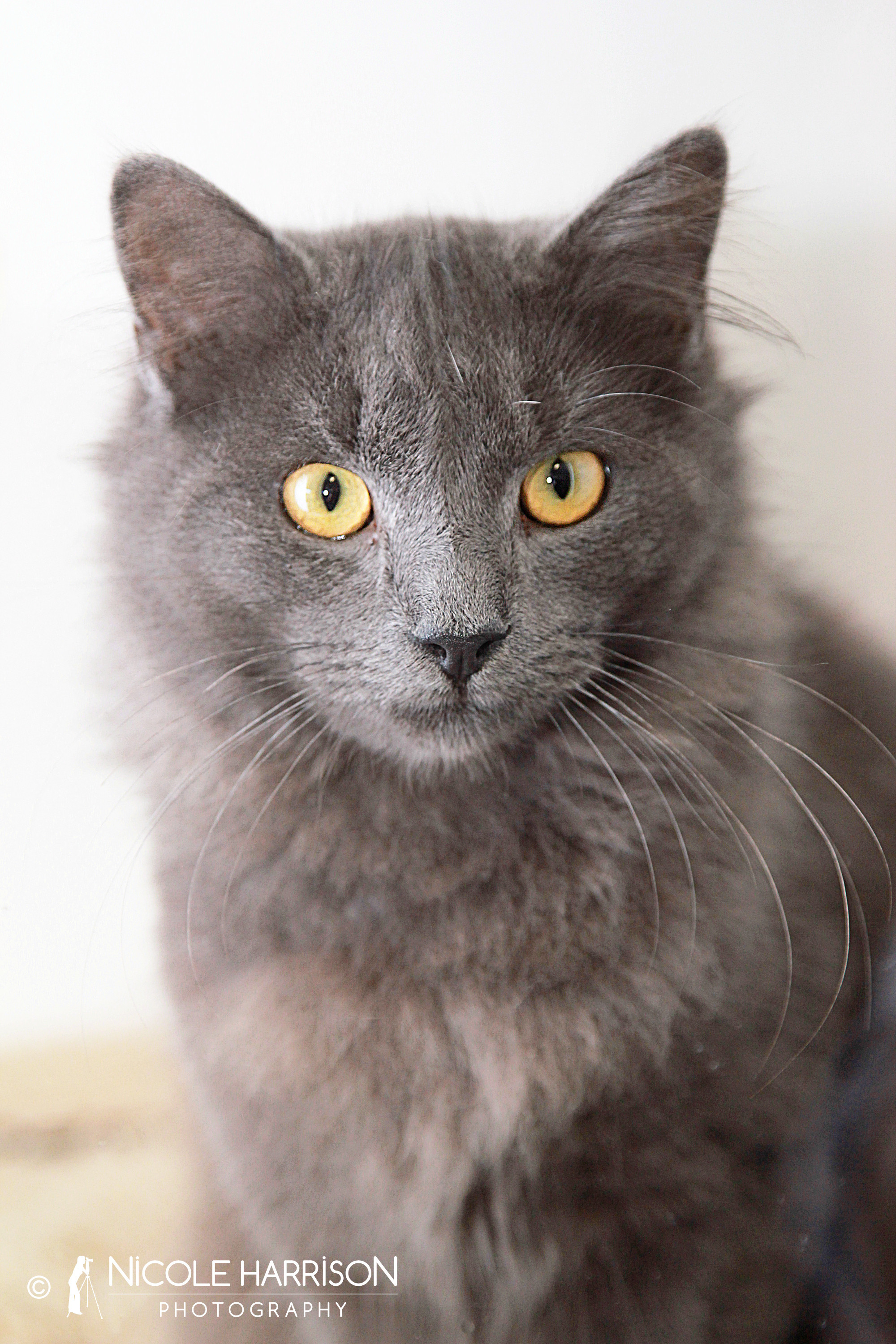 Oyster, friend and possibly brother to our handsome Obie is another beautiful blue grey boy with a fluffy coat and bright yellow eyes. He loves to sit and observe all that is going on around him and is at all times intrigued in the world outside his condo.