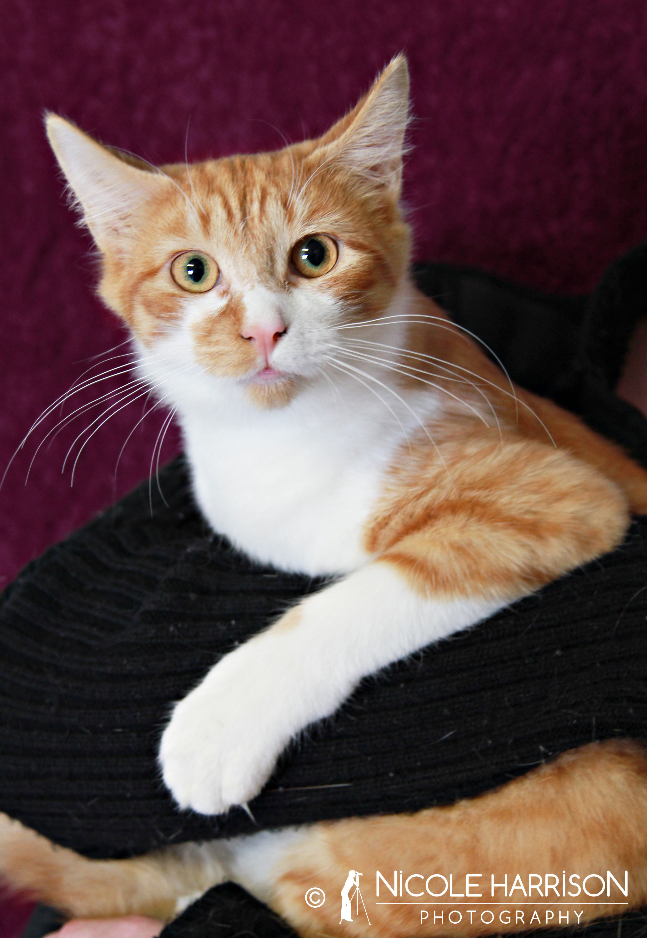 Being a ginger & white kitty, Bangers has soft and sensitive pink skin, which means he'll need a home where he's kept indoors at all times to protect him from the high risk of skin cancer as well as all the other threats the outside world brings to a little kitten like Bangers!