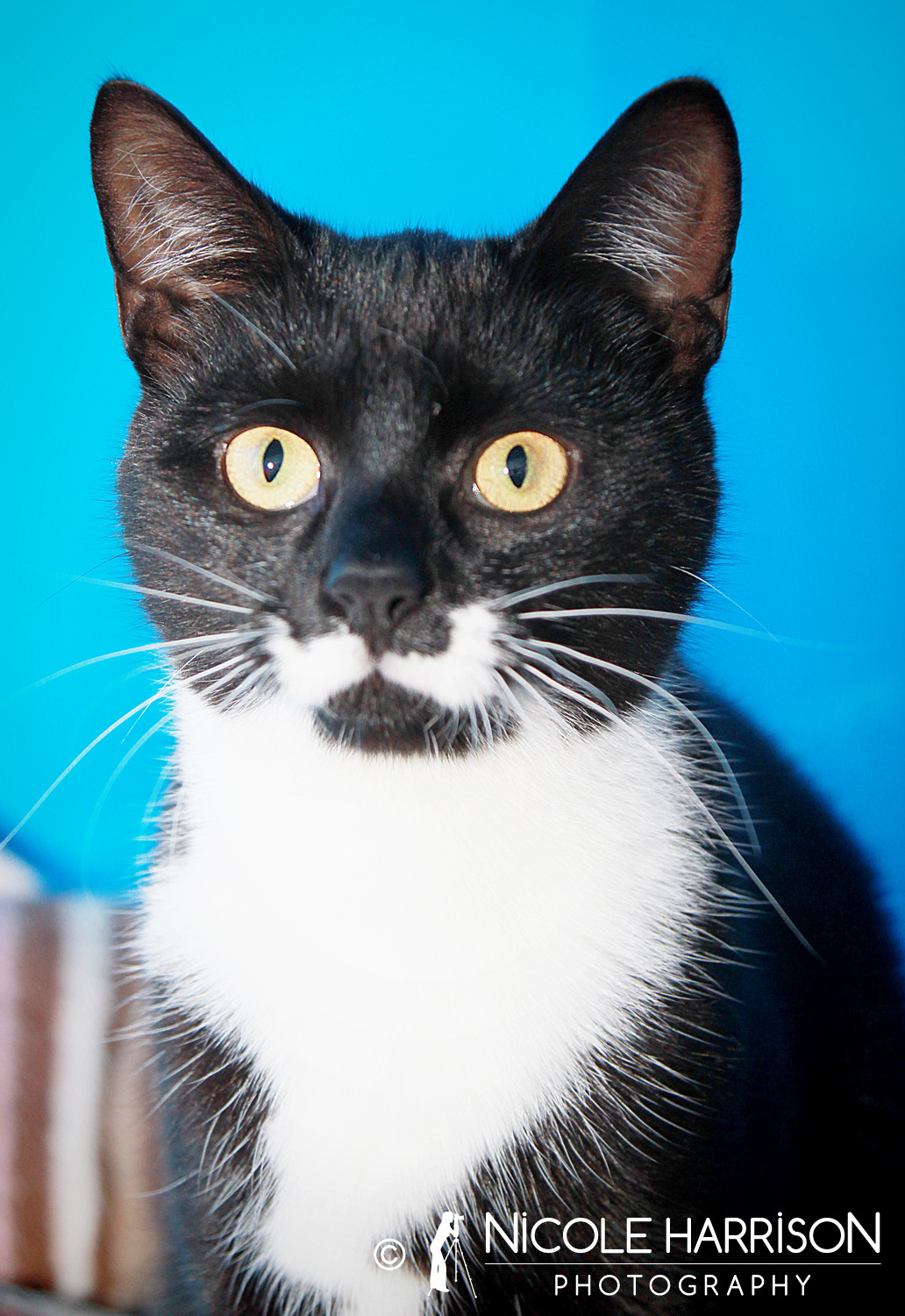 This black and white beauty is as talkative and happy as they come. Always welcoming you with a cute meow when you come to her cage she is never anything less then excited to see you.