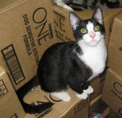 This little boy has an usual smokey black coat. He's cuddly, friendly and playful. He gets along well with other cats but isn't so keen on dogs. He'd be fine in a home with kids. He's an extrememly handsome and fun loving, good natured boy who will fit easily into a busy household