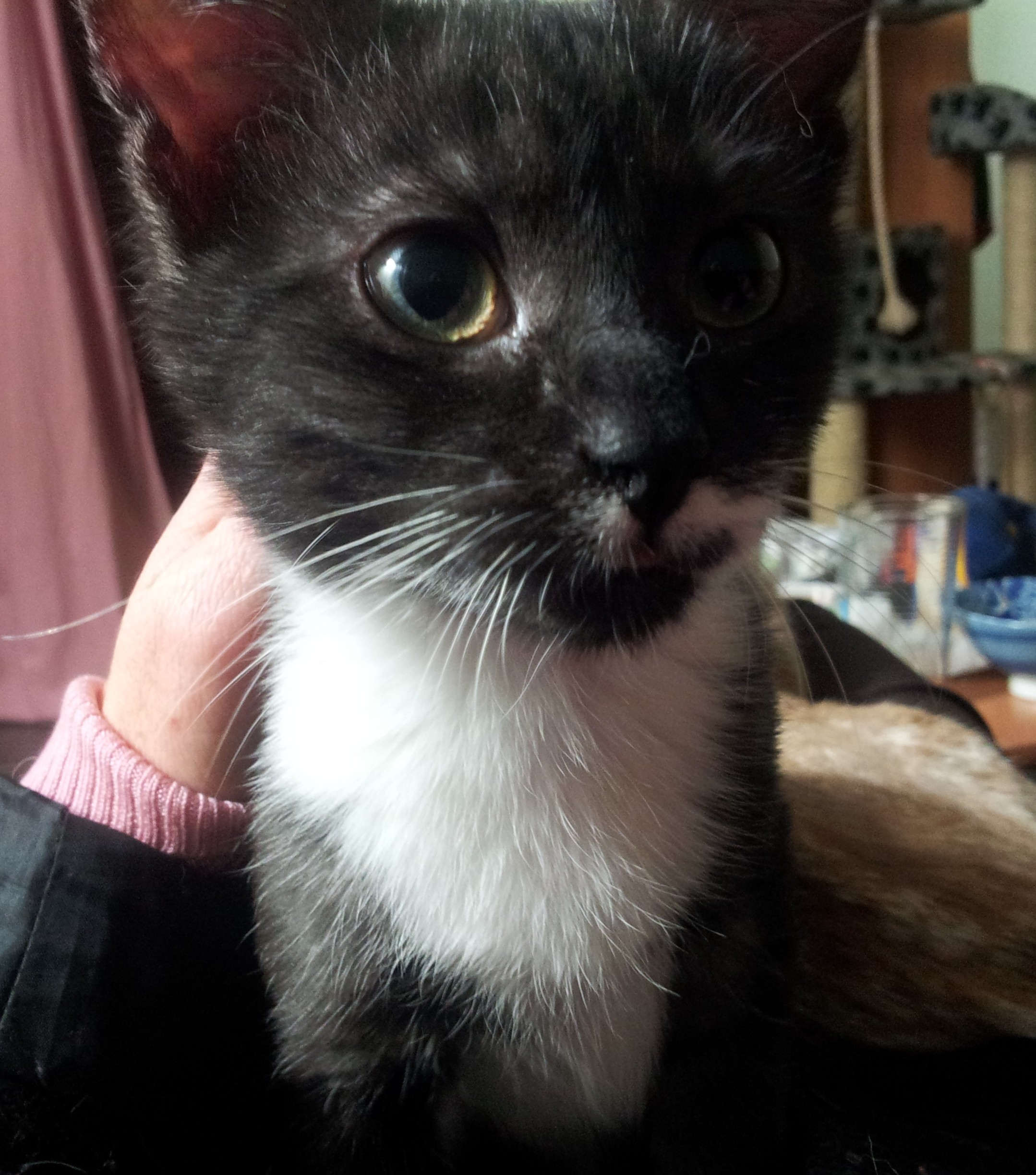 Ashley is my dear little shadow, following me around everywhere and then on my lap snuggling the moment I sit down : ) She has a sweet little voice and always greets me with a little lady meow... Her coat and markings are just beautiful, as she started out as a black and white tiny tot, but gradually grew lots of white specks through her coat, so looks just amazing! She is such a dear little tot and loves her tabby sister Kyla so very much if you're interested in adopting two bestie siblings : ) They were found in a box next to a Penrith clothing bin, so are very lucky indeed!