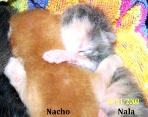 Nacho was one of five babies that was found when they were only two days old. . Born on the 3rd january 2008. . They were abandoned on a train track. . A lovely man stayed with them for an hour and a half to see if their mummy would return. . And when she did not. . He wrapped them in his leather jacket and put them on the back of his motorbike and brought them to a best friends rescue foster carer. Nacho is the alpha male. . This is a stunning ginger man who is the biggest of the litter and has developed the fastest. . He is always off on an adventure. . Crawling around all over his brothers and is already a confident kitten who loves to get stuck into everything. . He seems to always take nala under his wing and it would be so nice to find them a home together if i can!