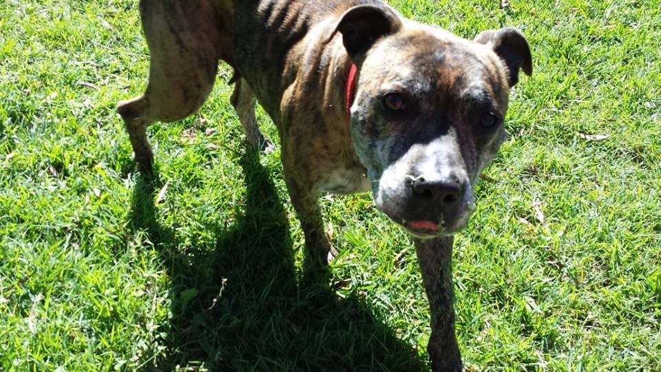 A true staffy personality but she is slowing down. She will need a firm hand. She is a dominant girl but has been around submissive males with no problems. she is not so good with her commands but if you are experienced it wont take her long. She is a beautiful girl with lots to give