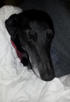 Friends of the Hound came to the rescue of Betsy and her two female friends, Mary and Lady, after they were to be brought into a vet clinic to be euthanased. A Vet nurse at the clinic put out a desperate plea for help to Friends of the Hound for these three girls. Their time was limited but the search was on to find the girls foster carers. Thank goodness they are all now safe and in care in the Newcastle region. Betsy is currently in foster care with other foster and pet greyhounds and a kelpie and has no problem getting on with them all. Betsy loves getting out and about for a walk and is very good on a lead. She will walk next to you at a steady pace without pulling. She loves to go for a ride in the car and gets excited when she hears the keys rattling in hope of an impending car trip. She does travel well especially if she can feel the breeze and fresh air in her cheeks as she travels. Betsy just loves to be hugged and snuggled up on the couch. She loves getting a kiss and tucked in at night with her blankie and doesn't generally move till morning. Don't be fooled by Betsy's greying muzzle, she is full of life and energy and loves a game chasing the soccerball. But you will be drawn in by Betsy's beautiful brown eyes. They are full of love and thanks. Betsy is looking forward to wonderful life in a loving forever home where she can be loved and hugged and spoilt to the moon and back. Is this your home Betsy is waiting for?