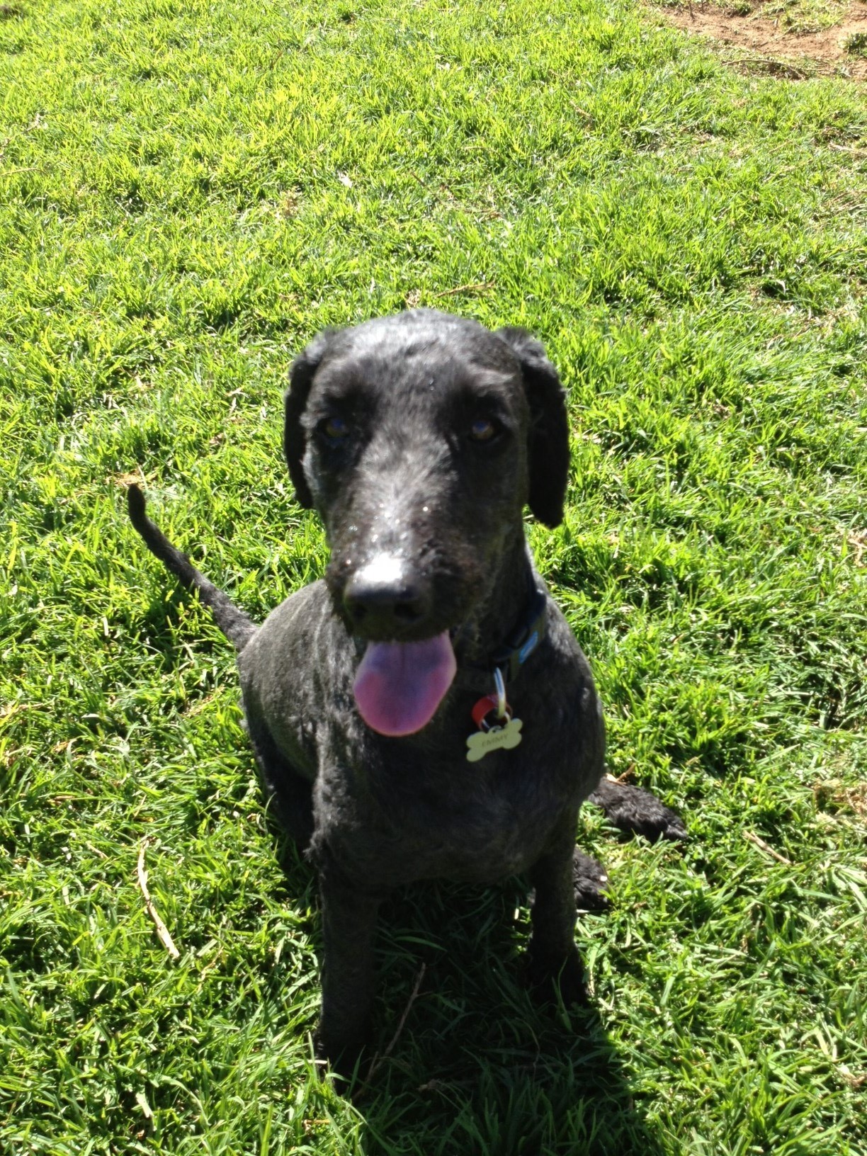 Emmy is a Labrador X Poodle and has the low allergenic coat of the poodle and the love for water and children of the Labrador..