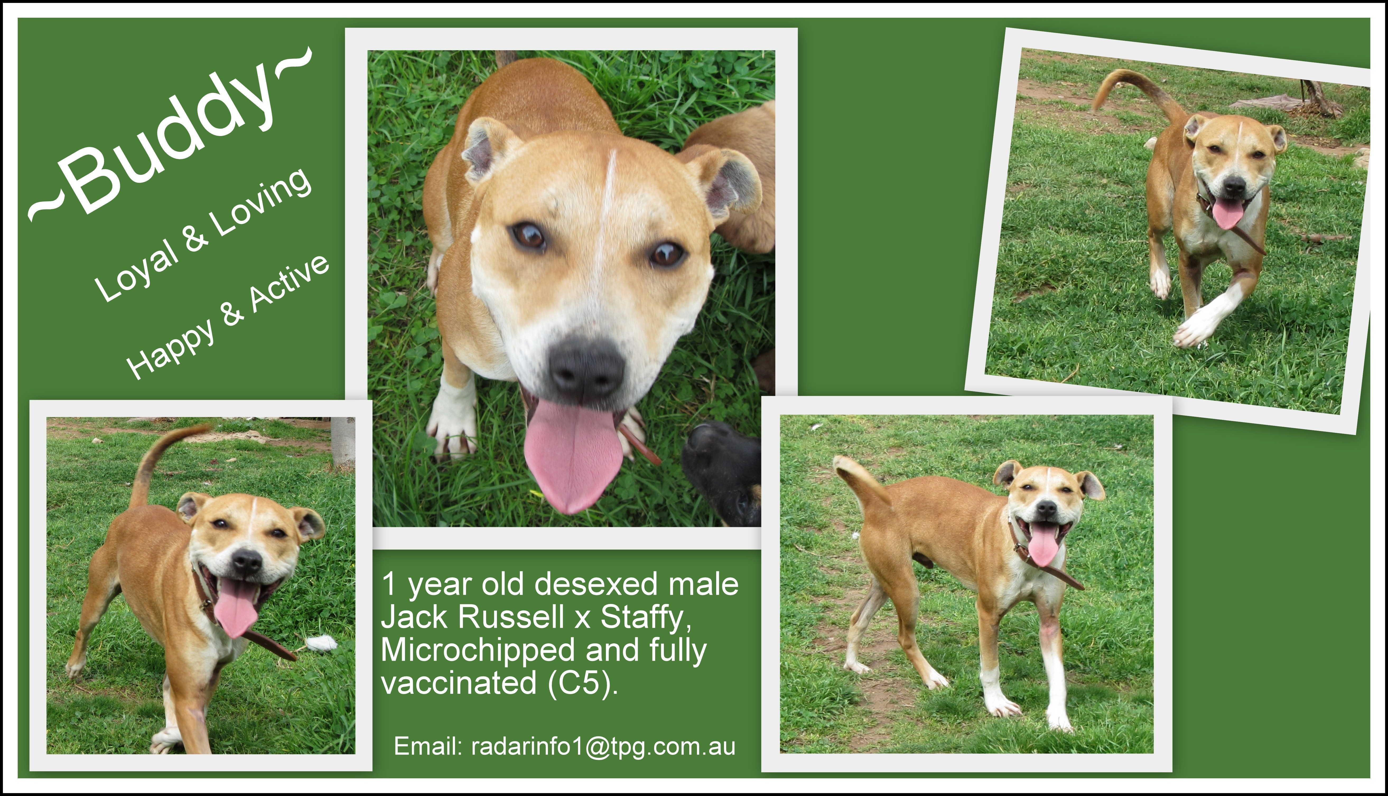 Buddy is a friendly young dog, who is looking for an active family to join. Buddy is fine with other friendly dogs, and loves to play.