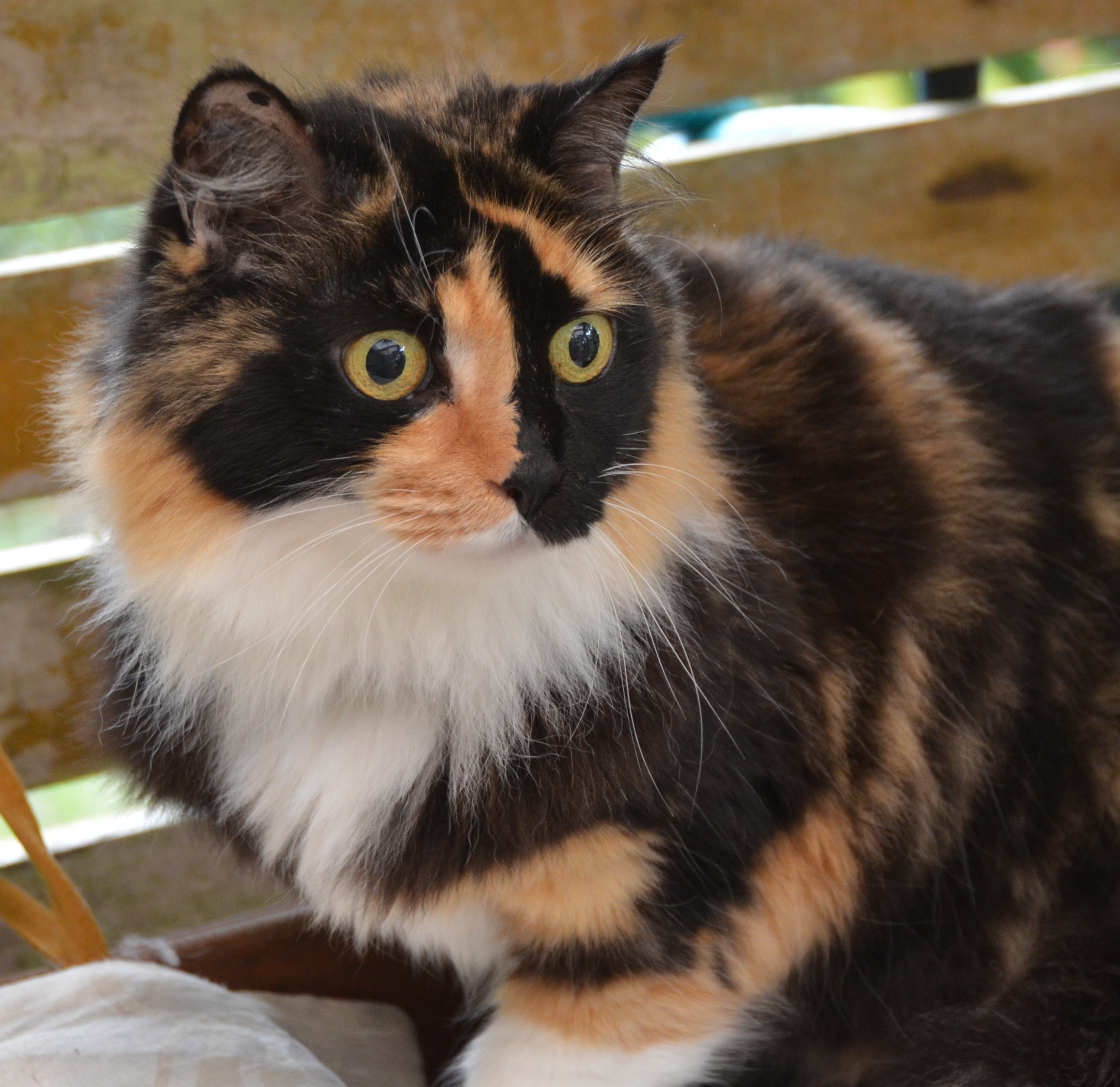 Misty is a stunning Torti who appears to be a Persian cross. She certainly has a Persian disposition, very affectionate and easy to handle. Misty is 7 going on 8 years of age and was surrendered to a local vet when her elderly owners couldn't look after her any longer. The vet felt she deserved another chance. All her vet work is done and she is available for pre-adoption.