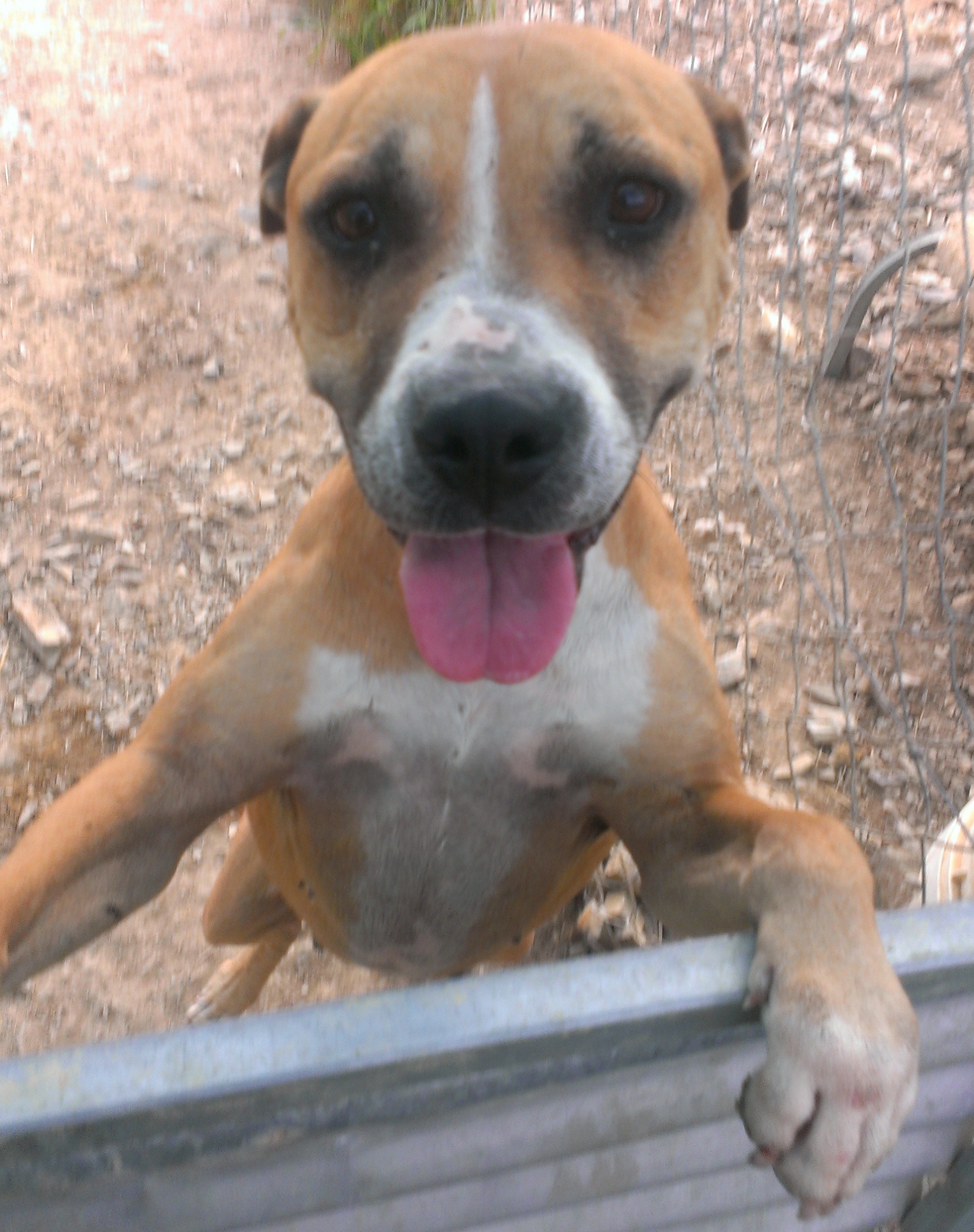 Amber is a sweet girl who like most staffies, is very people focused. She thrives on company and will do what she can to be around you and to make you happy. Social with other dogs, amber can be a bit dominant at times, so would be ideal as an only dog, or with a placid male of a similar size. She is used to being an outside girl, but I'm sure she would be just as happy if you offered to share a corner of your bed with her.