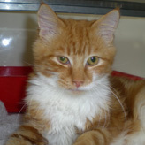 A very handsome ginger boy, quiet and gentle with a gorgeous bushy tail. He loves company. One of our cat volunteers says that lawrence is like a dog - he follows you around and he gazes into your eyes!
