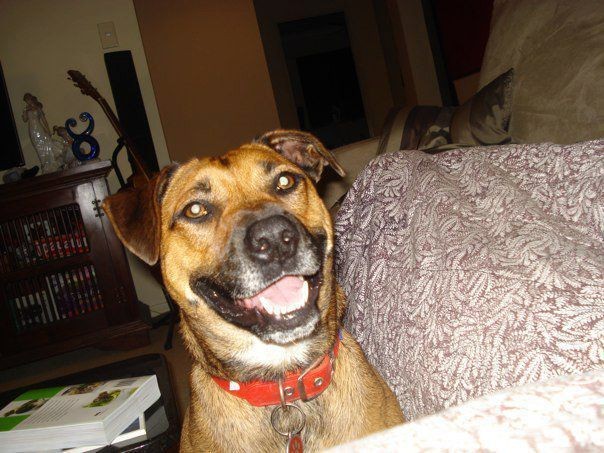 Ruby (a staffy cross kelpie, with the emphasis on kelpie) is a very loyal, sociable and sweet-natured dog who is great with children and other dogs. When we first met Ruby, she took to us straight away, like we had been her friend for years.