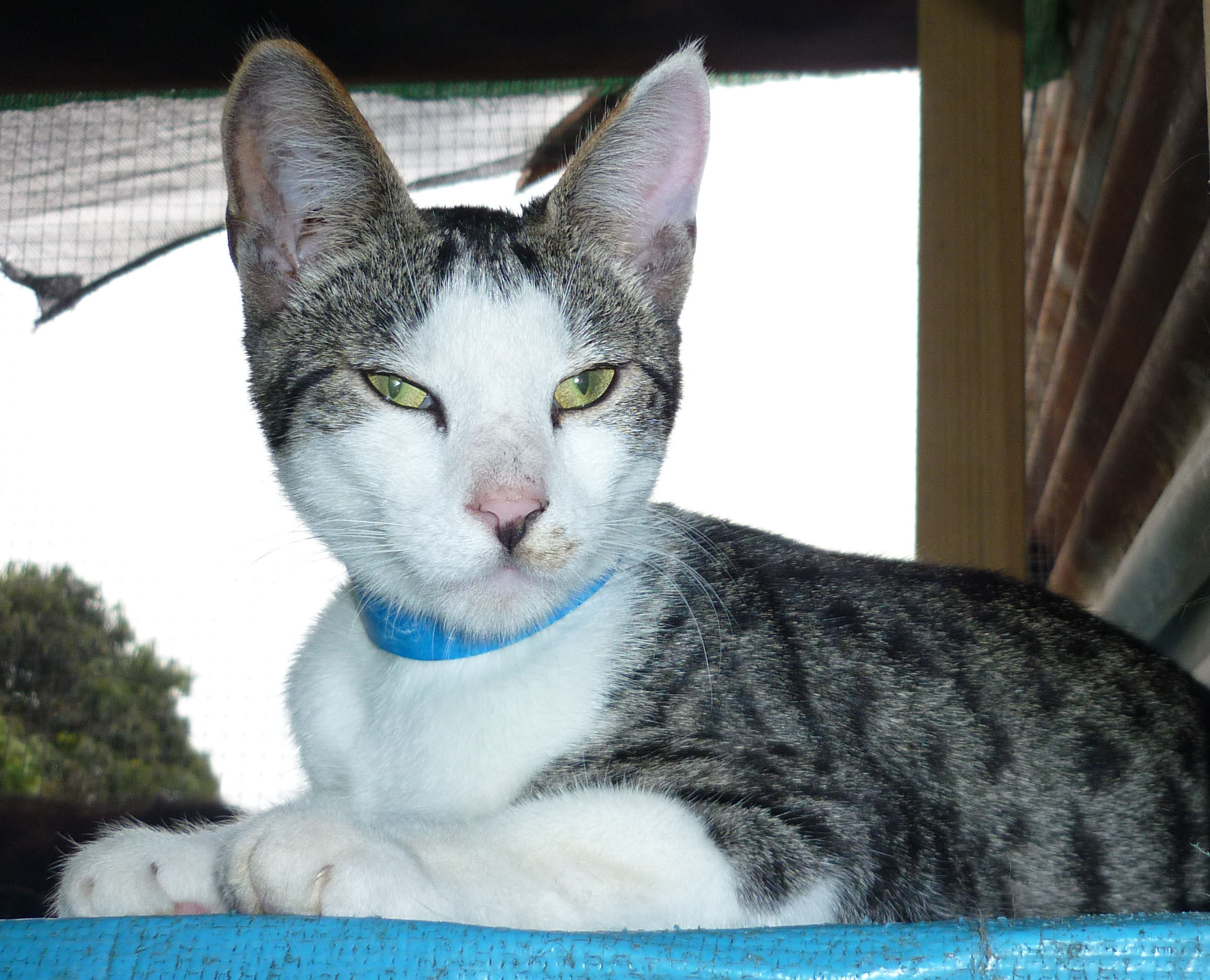 Caley was surrendered to HappyPaws Haven because his owner moving away and could take him with them. He is a beautiful tabby and white boy, loves people, gets on with other feline friends. He is a typical young male who loves to play and is curious about anything new. You often notice that he suddenly appears when doing the litter trays to supervise and to be stroked as he passes by. He loves watching birds flying past and tries to catch the insects if they dare to come near. He is immunised, micro chipped and de-sexed, and regularly treated for worms and fleas.