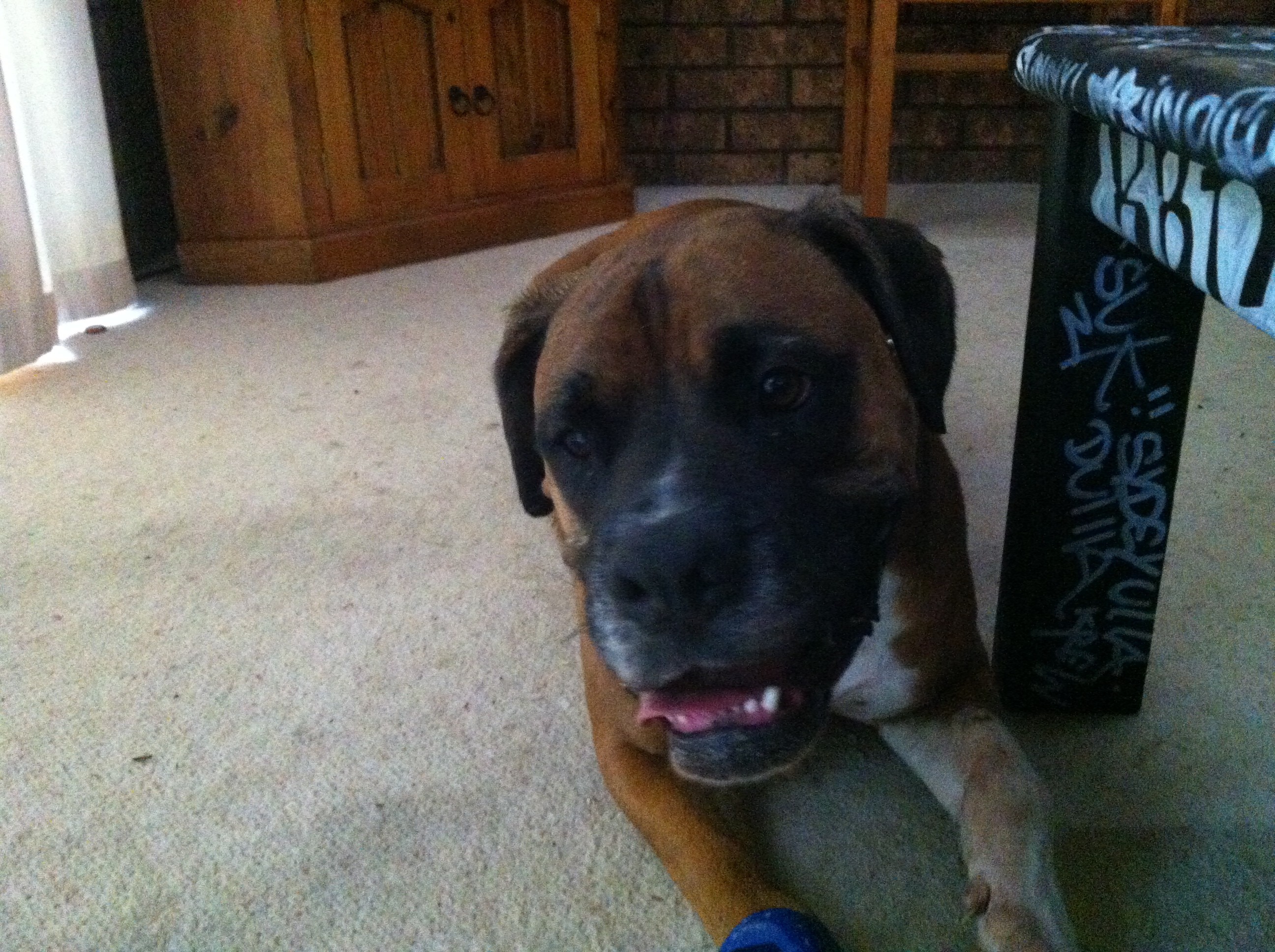 Bubba is a gorgeous girl & is a boxer x mastiff, she is a very happy bubbly girl with a typical Boxer nature & will need a active family, she loves cuddles & quiet time & enjoys a pat and a brush, Bubba enjoys ball games and it's funny to watch as well & just adores the beach, she needs to futher her training on the lead & is egar to learn what life has to give, she is on a property at the moment and she's been playing with two mastiffs. Bubba's perfect home would be as a companion & have teen age children to play with. Bubba is not a SCARI girl just trying to find the right family.