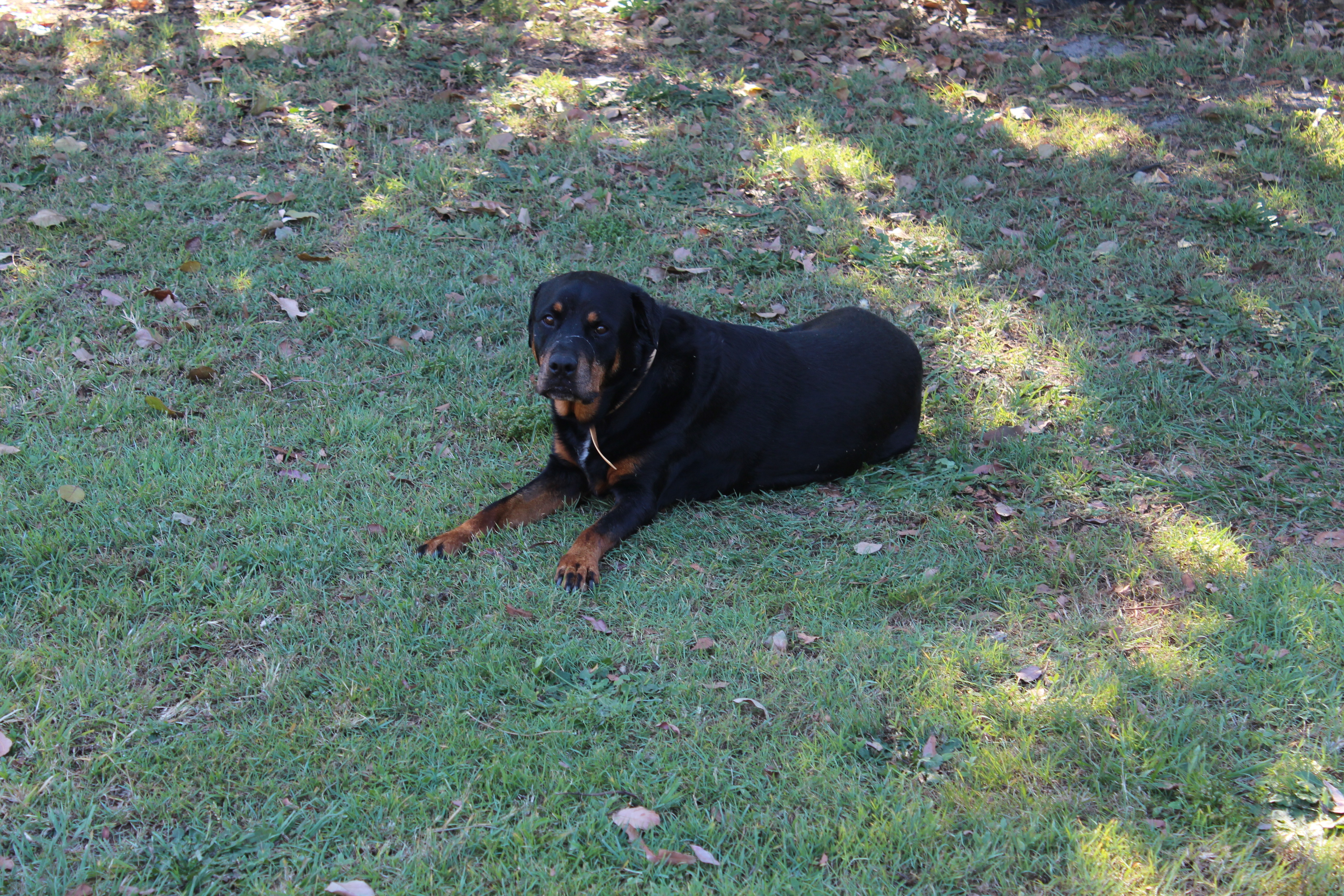 Doesn't try to escape, doesn't dig or chew things and she barks if someone comes to the fence but has shown no aggression at all.