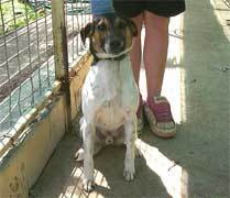 Patch is a good looking fellow, who is crossed with a smooth fox terrier. . . Not a mini foxy. Plays with the others in his kennel constantly. Would be an ideal kids dog