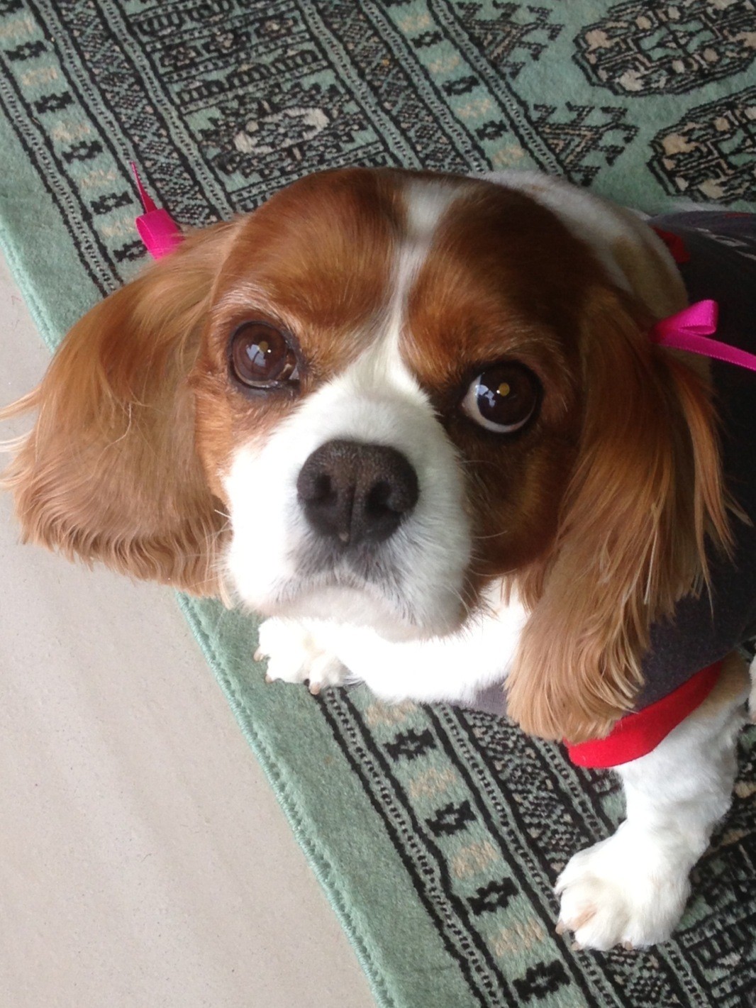 Coco has a wonderful, sweet nature (like most Cavaliers) but can get a bit excited around people and other dogs whilst in their company.