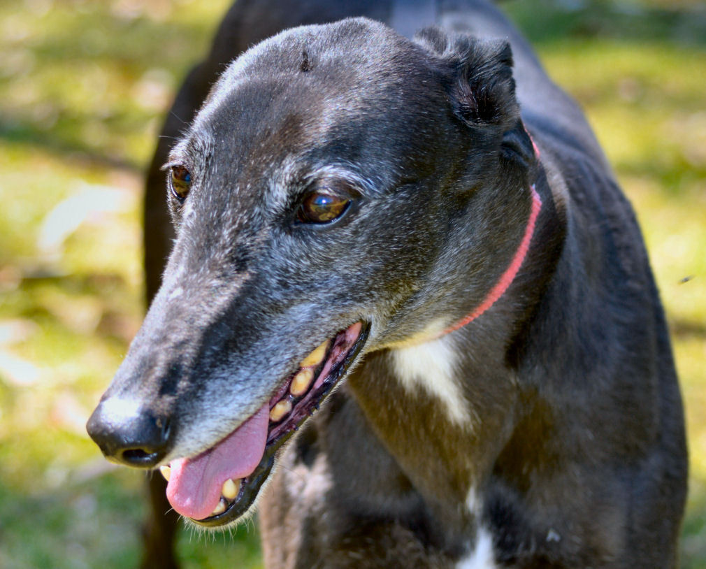 So as you can see I am a very special greyhound, I am getting on in years and getting a bit grey around the face but I think that only adds to my beauty. Being an older lady means that I am very relaxed, I walk very well on the lead and I love meeting people and always wag my tail.