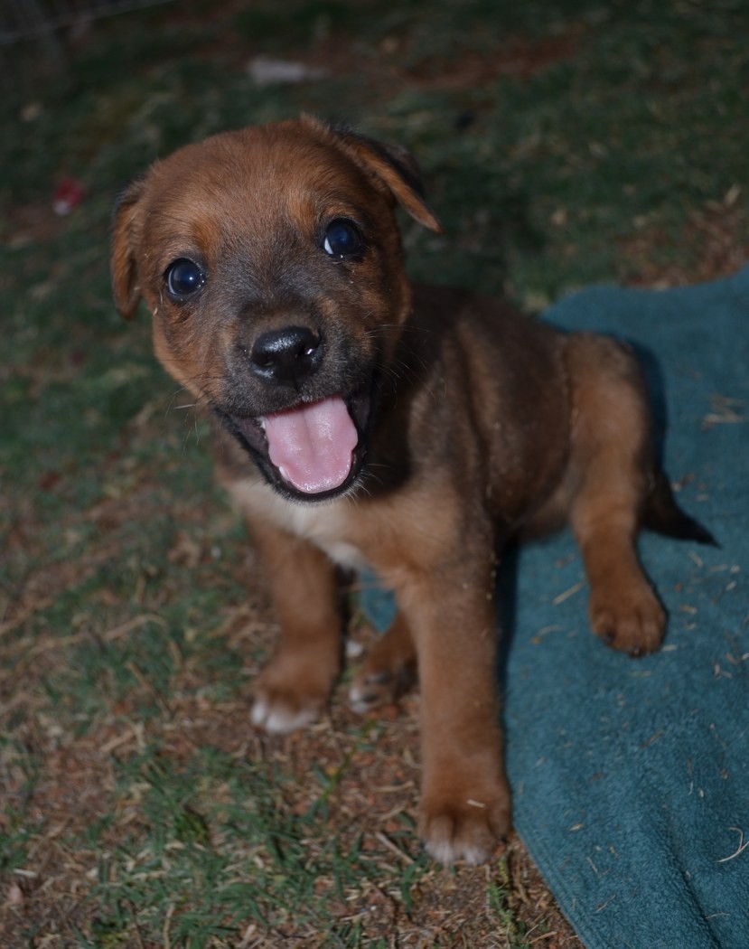 Chief is full of personality and spunk! This little guy was from a litter of 6 so loves to run around and play with his siblings and explore. He isn't fazed by cats and will do anything for love and attention. Chief is a smart little boy who we believe will train easily as he loves his food and will do anything to eat eat eat! He has a beautiful brown coat with black markings and also a white patch on his back. Chief will need a home where he will be trained and walked often as we believe he will grow to a Medium/Large sized dog. Will make a loyal companion for one special family.