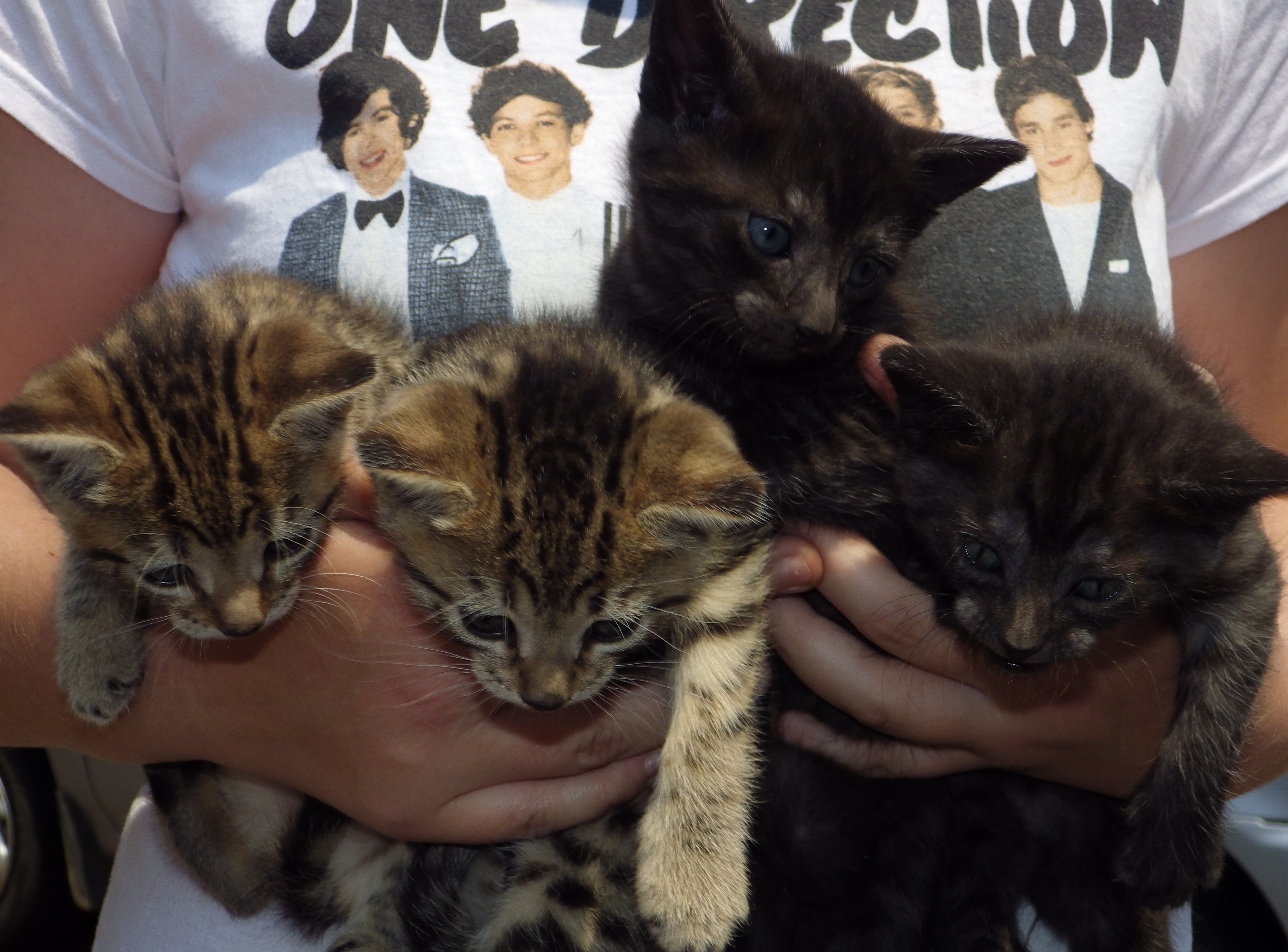 Four beautiful little kittens Harry & Heath (males) and Holly & Harper (females), are all very playful and eager to explore the big wide world that awaits them. \ The girls are spotted tabby and boys dark tabby.