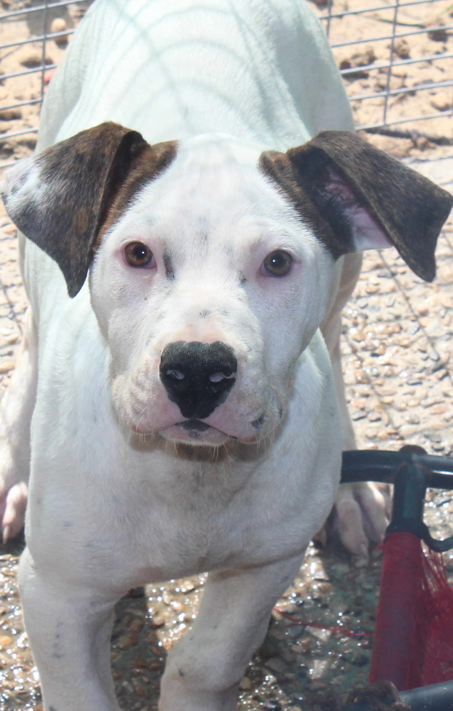He is an ex pound puppy so his background is unknown but he is a suspected Bull Arab mix. Approximately 4 months old.