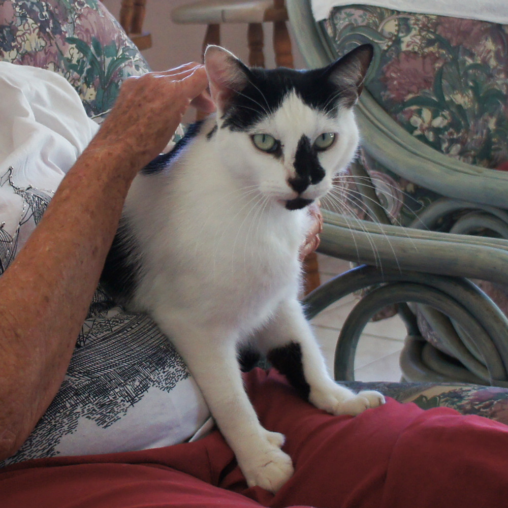 Polka is a lovely black and white smooch boy, his preference is indoor/outdoors, he loves the garden during the day. Polka is dog tollerent and OK with some cats preferably an easy going male.