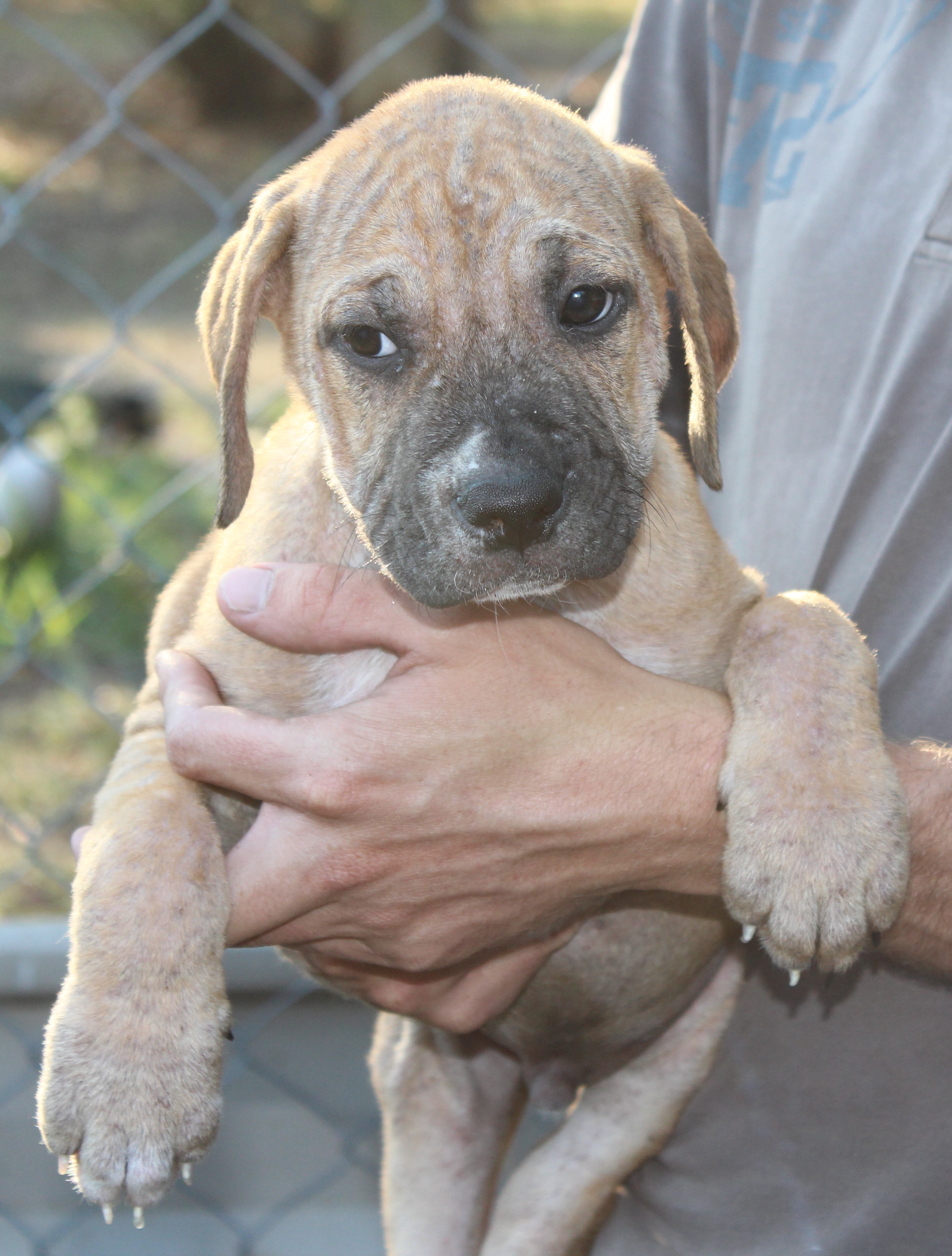 He will be a big boy and is expected to be a mix of bullmastiff / bull arab. Please consider the yard size you will need to keep this boy happy and the exercise requirements also.