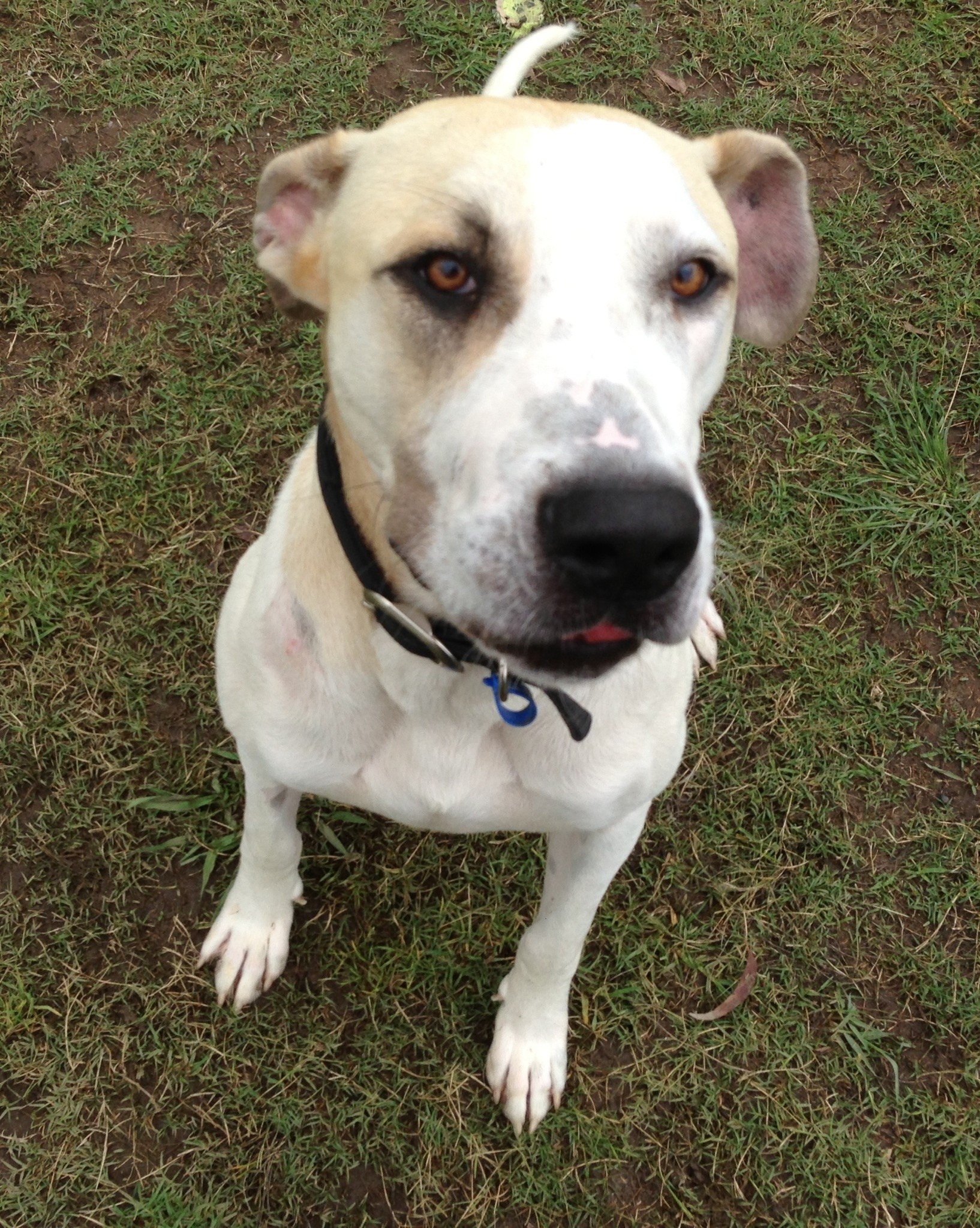 Boss is a big boy full of love. He isnt very interested in playing with toys he would much rather run around with you! His long legs make him look very funny when he runs laps around his enclosure & when he is really happy he will lick you with his huge tongue. Boss sometimes cant contain his excitement he often jumps on people to say hello. It would be best if he goes home with children who are confident with large dogs. During his stay at the shelter Boss has been playing with some dogs he is very boisterous and enjoys jumping all over his playmates. If you have another dog and would like to adopt Boss you will need to bring them in to make sure they can be great friends as not all dogs enjoy boisterous play.Walking on lead is very exciting Boss pulls to make sure he gets to his destination as fast as he can but with regular exercise and some training he will become easier to walk. If you would like any tips on how to control him while walking feel free to ask the friendly staff at RSPCA.Cats and pocket pets can be a little scary to Boss so if he goes to a home with them he will need to be introduced to them slowly and they must be supervised at all times as he might decide they are fun to chase. It is important that all animals have a secure place they can hide when they feel threatened. Boss needs to go to a home with secure 5ft fences with no gaps he can squeeze out of. It is also important that he always has access to clean water. Shelter must be provided in case the weather changes unexpectedly and you are unable to get him inside.If you would like to meet the lovable Boss please come into the Hunter RSPCA and say hello.