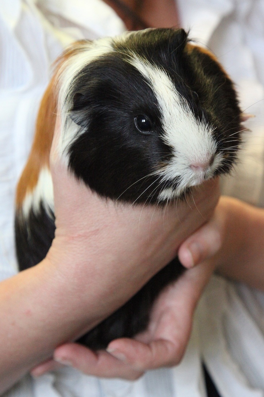 Guinea Pigs also referred to as Cavies are a rodent native to South America. They are sociable animals and should not be kept alone. They often become very used to handling especially if started at a young age. They can be very vocal animals with a wide range of calls.A balanced diet will contain an unlimited supply of good quality fresh grass and grass hay (not Lucerne or clover hays as they are too high in protein and calcium) a measured daily amount of fortified pellets and a limited amount of Vitamin C enriched herbs fruits and vegetables. Always have fresh clean water available. They are naturally coprophagic meaning that they eat some of their own droppings which is normal and helpful for the bacteria in their intestines.Some Guinea Pig coats need regular grooming and their nails may need occasional clipping. Guinea pigs do not tolerate heat very well and are vulnerable to heat stress so be careful in placement of their house especially in the warmer months.