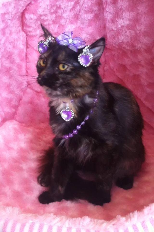 Diva is a pretty little long haired dark torti girl, who was raised around other cats and children. She is well handled and loves her cuddles.