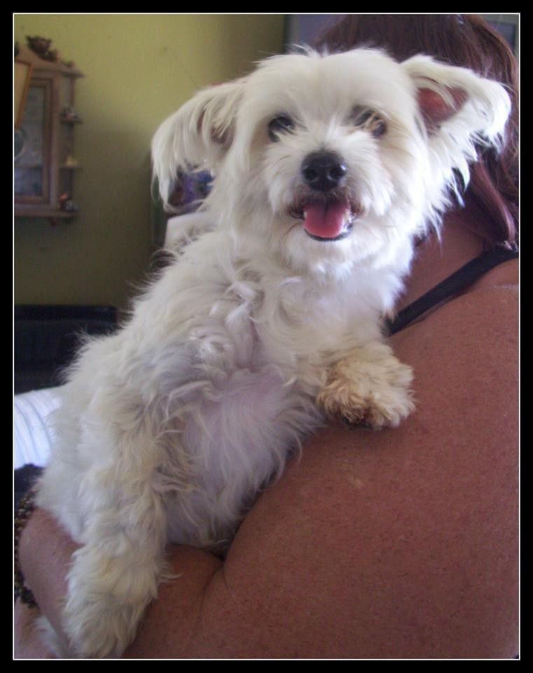 Angel is just that. She is a sweet, cuddly little girl who loves to curl up in your arms and snuggle. She loves other dogs, has no problem with cats and loves children. Perfect for an older retired couple who want a baby to dote on.