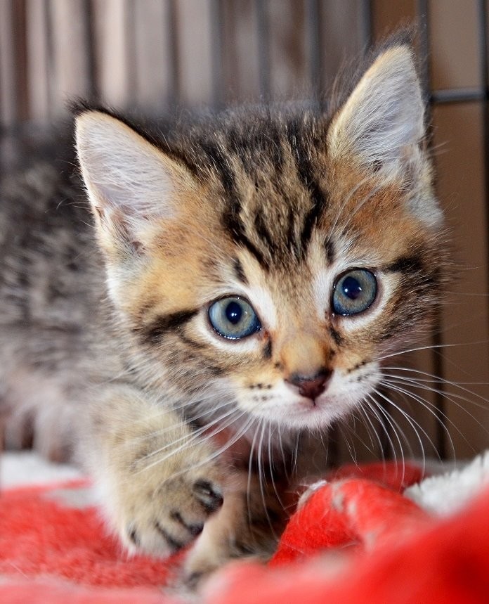 Sakira, Female approx 6 weeks. Sakira is a adorable little girl with black tiger stripes markings.