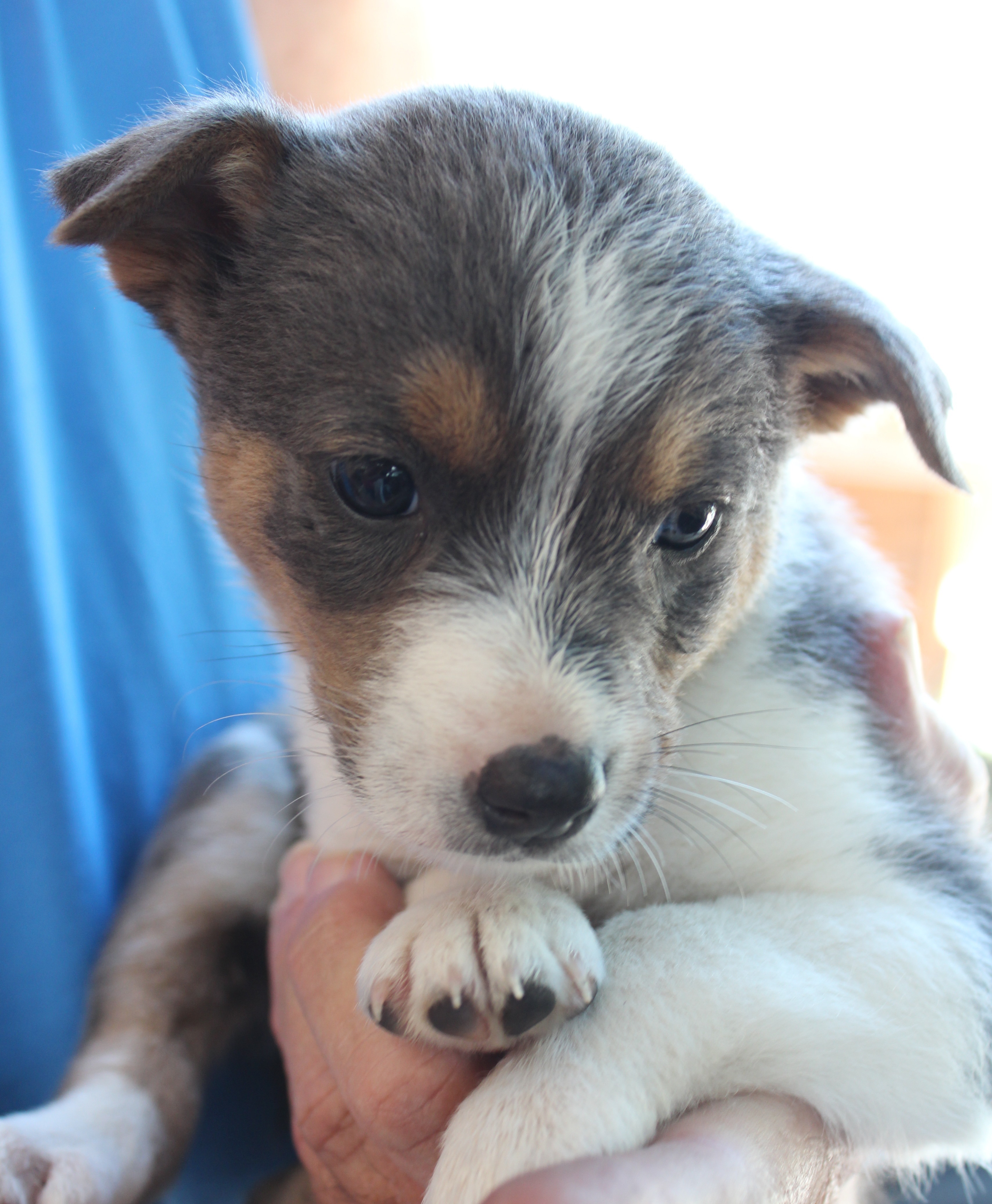 She is just on 8 weeks old and Border Collie x Kelpie/Cattle, almost looking purely Border Collie, she is a Gorgeous blue, tan and white colour.