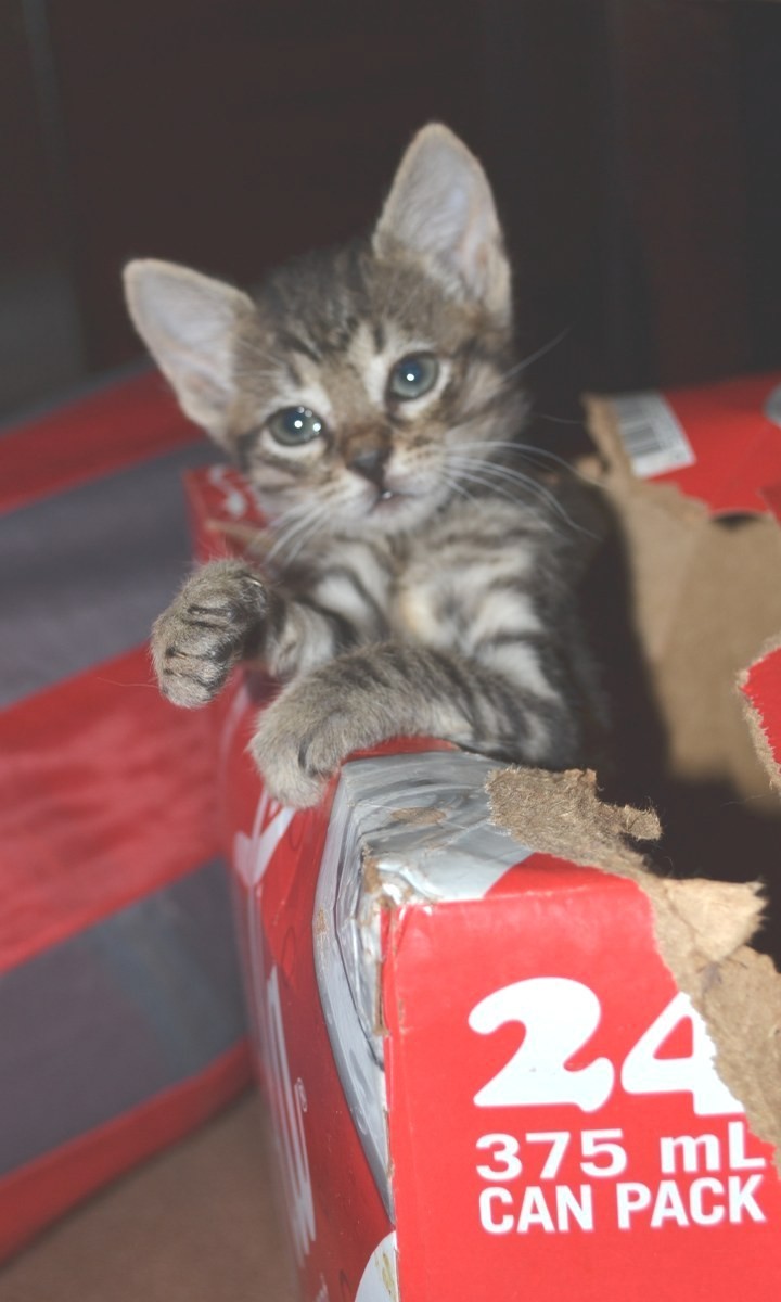 Loves to jump in and out of boxes as you can see she is only still very little and makes herself right at home in a coke a cola box (pictured. Halo loves to snuggle with her siblings so would be great in a household with current pets. She is very adventurous and inquisitive will always find a way to sneak up and snuggle up with you.