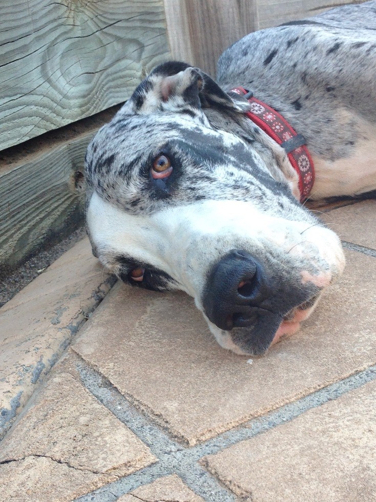 Indy is such a beautiful, sweet girl. She would fit in to a home with other great danes and small dogs, cats and children. Due to her age, she would benefit from some more training and is very willing to please, walks beautifully on her own and in the company of another dog. She travels fantastically and love, loves the water. She does require good fencing in order to keep her safe. Once you meet this girl you will fall in love very quickly, seriously who couldn't with a face like hers. Can I please ask that everyone makes first contact via email, it's a very busy time of year, we will get back to you ASAP but please keep in mind we have jobs and families also.