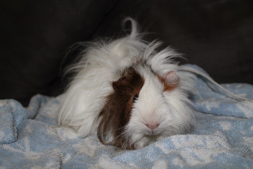 He doesn't like being 'caught' but once he's on your lap getting treats and feeling comfortable he thoroughly enjoys pats! We'd like to see him with a piggy friend as we feel this would help his confidence.