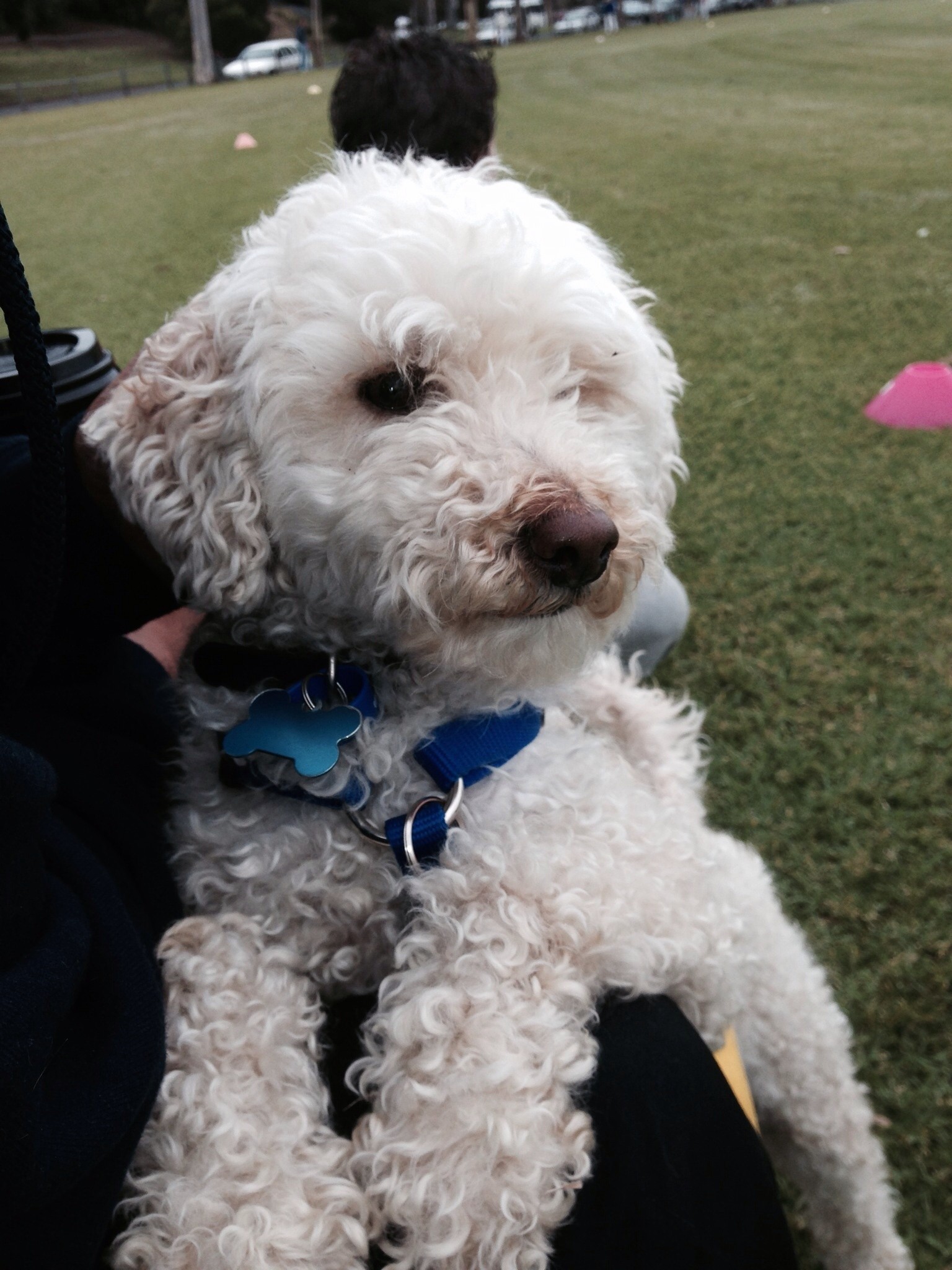 He gets along fantastically with other dogs and just wants to play. He is a low maintenance, easy going boy who rarely barks and doesn't shed!! He's an absolute angel in the car and is toilet trained. He will sleep happily in his own bed next to you but if he's invited up on your bed he will most certainly love to snuggle up with you and won't annoy you by wriggling around all night.