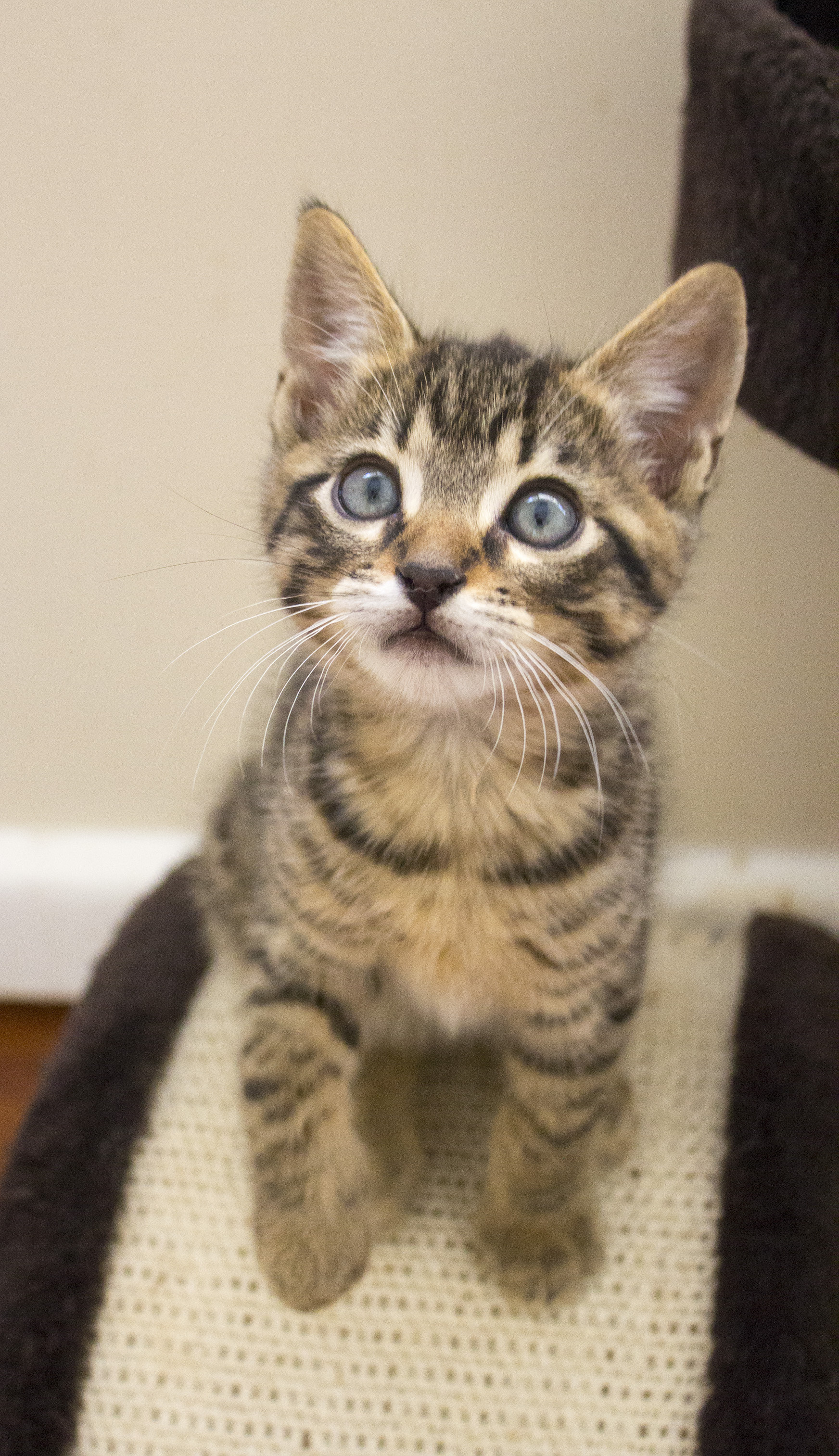 This gorgeous little tabby came in to care and has settled in very quickly. He will purr as soon as you start patting him and is very playful and confident.