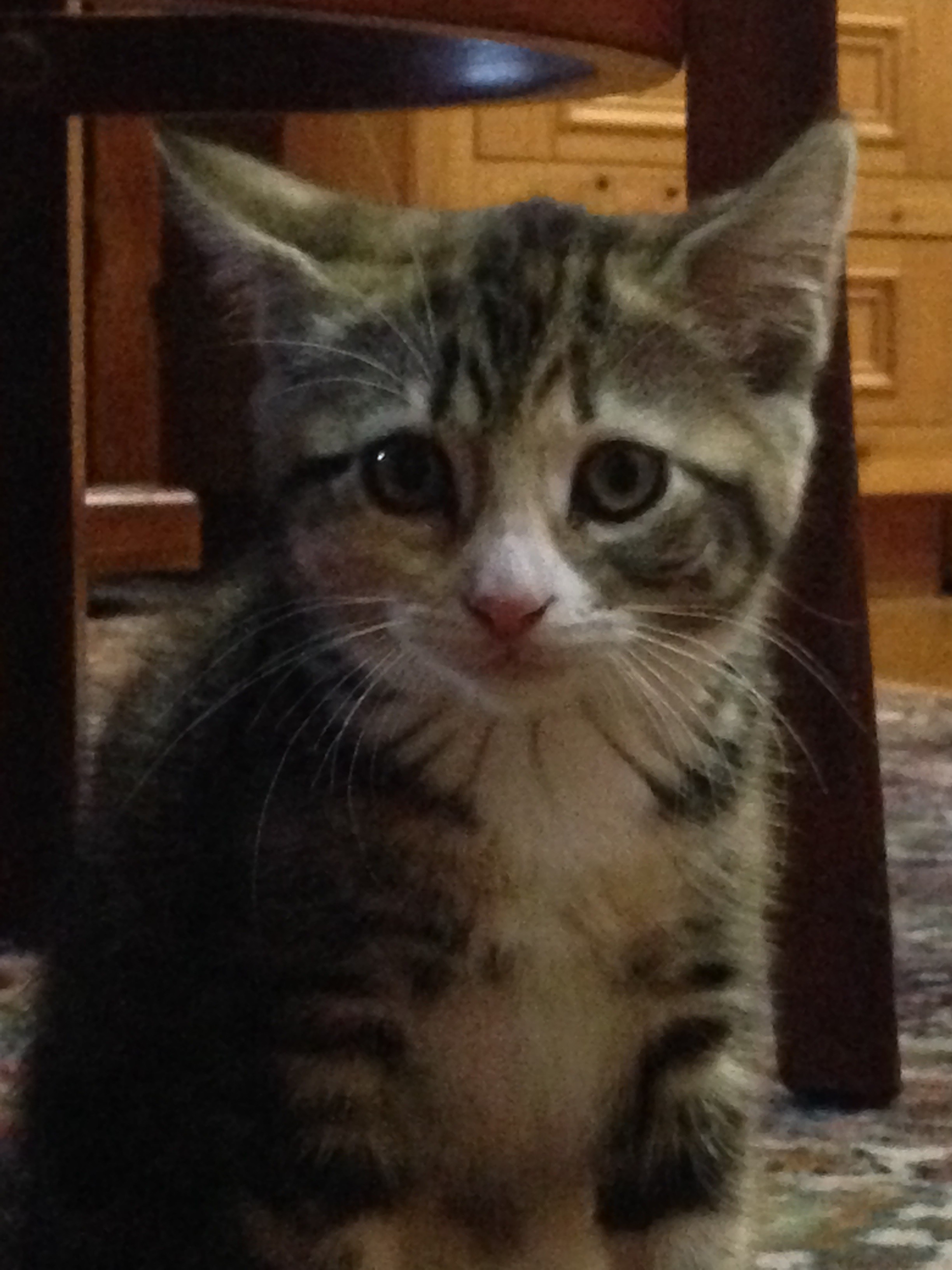 Saffy is a gorgeous little multi-coloured kitten who loves a cuddle. She's a bit shy at first, then relaxes into your hands and stares into your eyes!
